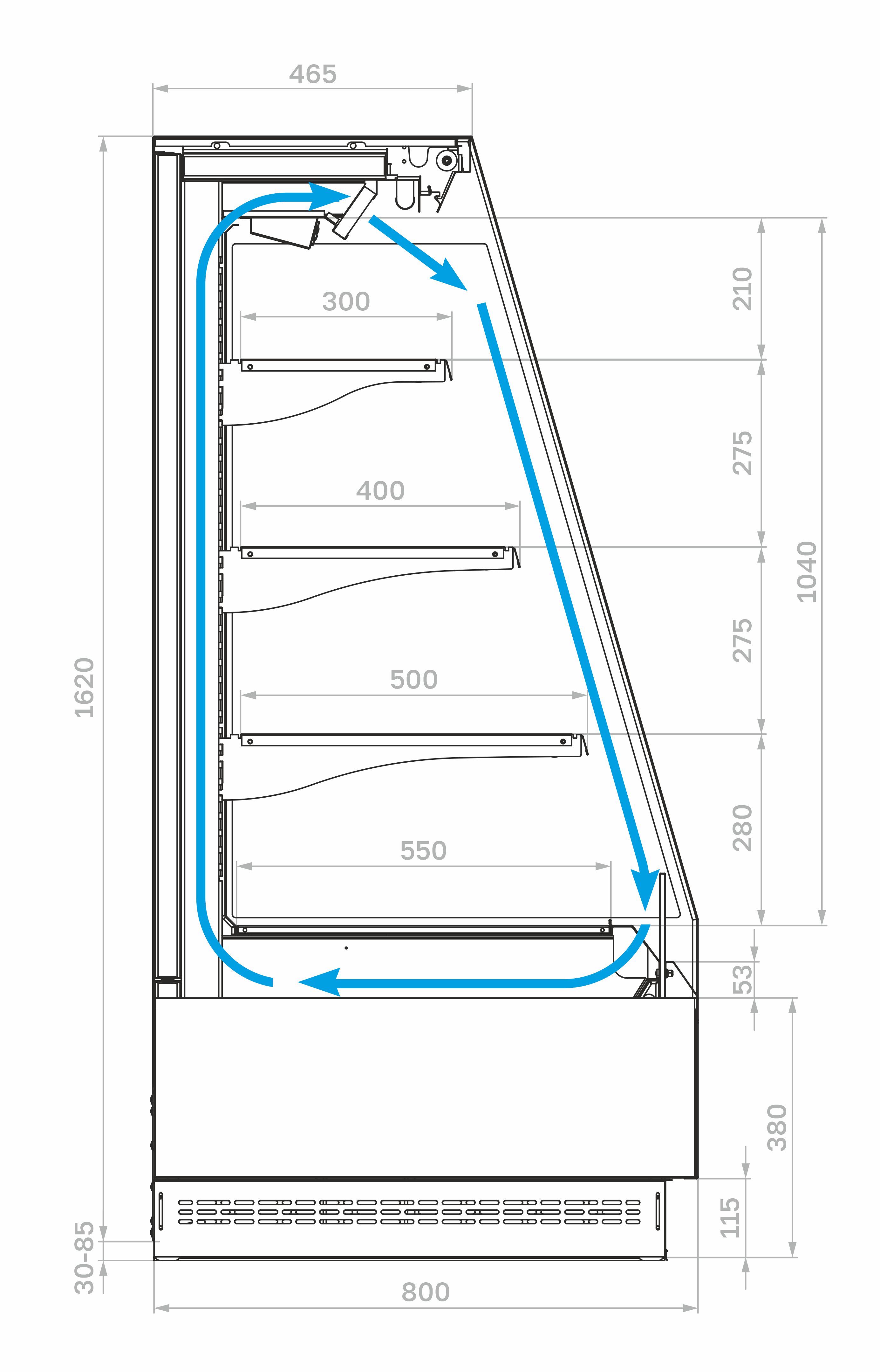 Горка холодильная Carboma F16-08 VM 1,0-2 0300 (версия 2.0) (9006-9005) (бок металл) предназначена для использования на предприятиях общественного питания и торговли, где применяется для охлаждения, кратковременного хранения и эффектной предпродажной демонстрации напитков, мяса, птицы, полуфабрикатов, молочных и гастрономических изделий.