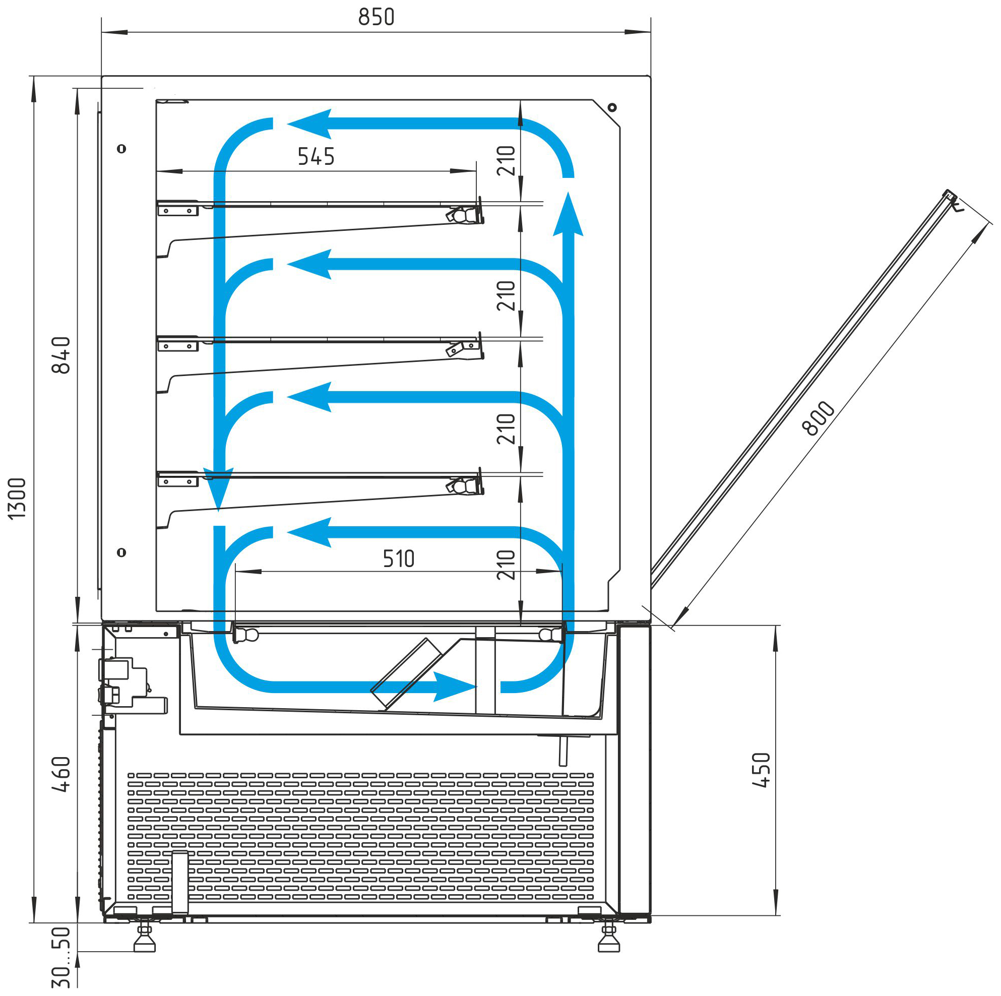Откидной передний стеклопакет с углом открытия 40° — удобство загрузки и обслуживания