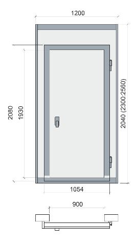 • Общие габариты дверного блока — 1200×2560 мм, что обеспечивает простую установку в стандартные проёмы холодильных камер