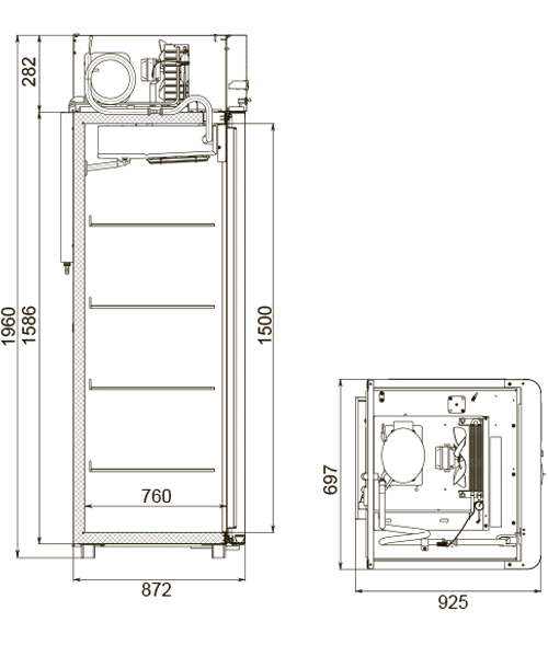 Каталог оборудования Холодильное оборудованиеШкафы холодильныеШкафы холодильные универсальные от -5 до +5 °СШкаф холодильный универсальный Polair CV107-Sm Alu Шкаф холодильный универсальный Polair CV107-Sm Alu Код товара: 062-611 Поделиться: WhatsAppTelegram СравнитьДобавить в КПВ избранное 0 129 370 ₽ В корзину 0 шт Под заказСамовывоз сегодня бесплатно Взять в кредит Купить в лизинг Получить консультацию в WhatsApp Описание Характеристики Отзывы 0 Инструкции 4 Шкаф холодильный универсальный Polair CV107-Sm Alu предназначен для демонстрации и надежного хранения продуктов на предприятиях общественного питания и торговли. Цельнозаливной корпус выполнен из стали с полимерным покрытием и оснащен алюминиевыми профилями, что обеспечивает высокую прочность конструкции и долговечность, а также подчеркивает современный премиальный дизайн. Шкаф работает при температуре окружающей среды до 40 °С и влажности воздуха до 80%. Особенности модели: Контрольная панель с быстрым доступом к настройкам, удобным возвратом в предыдущее меню и возможностью полного отключения без отдельной кнопки. Жидкокристаллический дисплей для наглядного отображения параметров. Клапан Шредера для обслуживания холодильной системы. Компенсационный клапан с ПЭНом обогрева, ПЭНы обогрева трубки слива конденсата и дверного проема — предотвращают образование льда и обеспечивают надежную работу. Распашной тип двери с возможностью изменения стороны открывания, что делает установку более гибкой. Полностью интегрированные ручки, удобные и стильные. Эластичные уплотнители с магнитными вставками для максимальной герметизации. Внутренняя подсветка вынесена на нижнюю часть фронтальной панели. Микропереключатель для автоматического отключения вентилятора и включения подсветки при открытии дверей. Регулируемые по высоте ножки для устойчивости на любом полу. Педаль для удобного открывания без рук. Замок для защиты содержимого. Высокая допустимая нагрузка на полку — до 40 кг. Размер полки: GN 2/1 (530×650 мм). Толщина стенки корпуса — 43 мм, что обеспечивает отличную теплоизоляцию. Polair CV107-Sm Alu — это функциональный и надежный холодильный шкаф с современным дизайном, который обеспечивает максимальную сохранность и удобный доступ к продуктам. Отлично подходит для ресторанов, кафе и магазинов, где важны надежность, стиль и энергоэффективность.Изображение товара, представленного на фото, может отличаться от его фактического вида. Показать все Габаритные размеры697×925×1960 ммДиапазон рабочей температурыот -5 до +5 °CДлина697 ммГлубина925 ммВысота1960 ммОбъём700 лРазмер полки530×650 ммКоличество полок4 штКоличество дверей1 штТип оттайкиАвтоматическая Тип охлажденияДинамическое Тип управленияЭлектронное Материал корпусаНержавеющая сталь Тип двериМеталлическая ЗамокЕсть Способ открыванияРаспашные ХладагентR290 Холодильный агрегатВстроенный Расположение агрегатаВерхнее Потребление электроэнергии в сутки4,5 кВтПотребляемая мощность0,4 кВтНапряжение220 ВГабариты в упаковке800×1000×2150 ммВес нетто113 кгВес брутто138 кгБрендPolairВсе шкафы холодильные универсальные от -5 до +5 °С Из нержавейки Оставить отзыв Еще никто не оставил отзыв на этот товар Схема POLAIR CV107-Sm.jpgИнструкция на POLAIR CV107-Sm.pdfДекларация о соответствии.pdfСертификат соответствия.pdf Похожие товары Перейти в каталог В наличии 140 675 ₽ Шкаф холодильный универсальный Polair