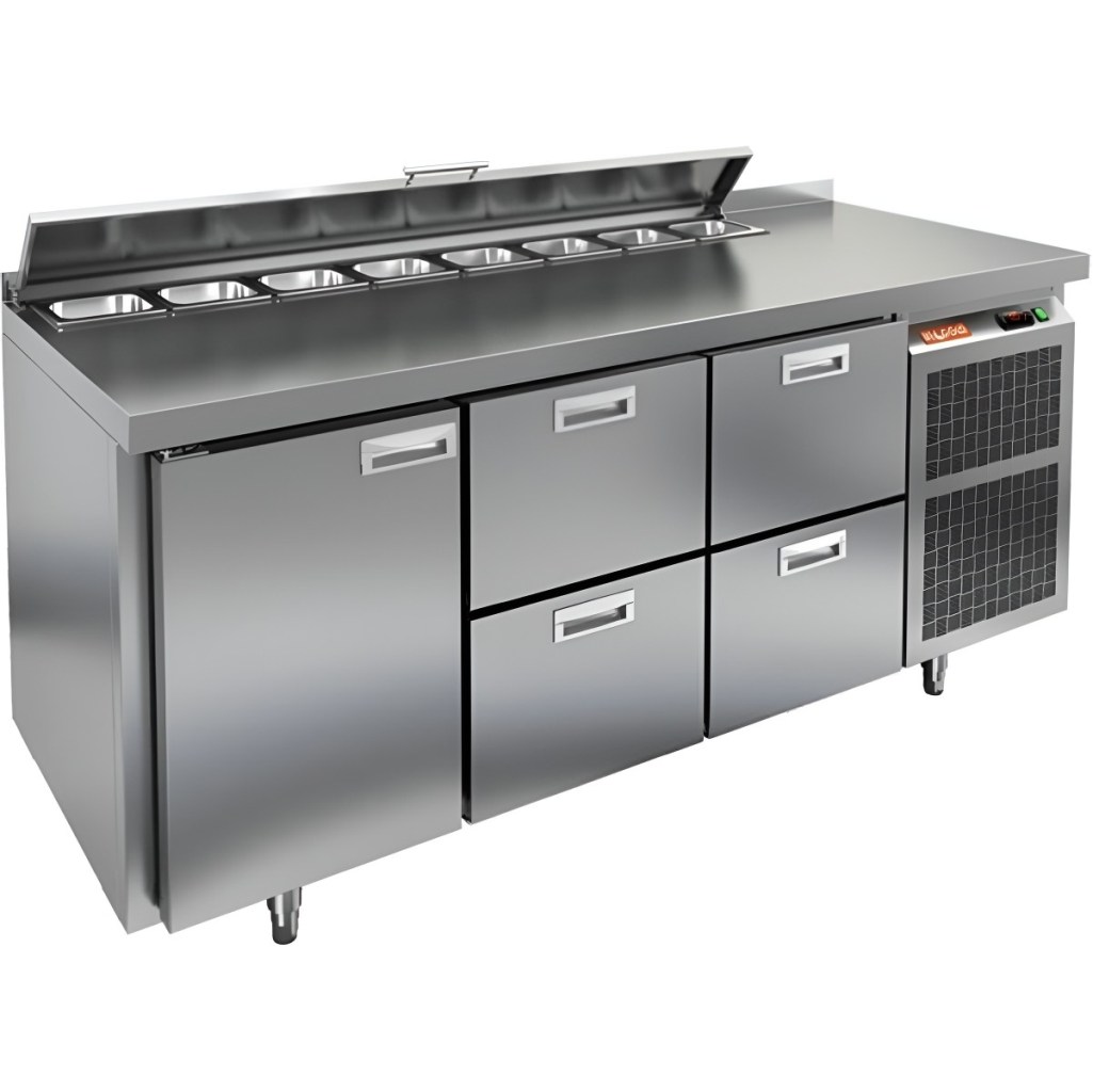 Каталог оборудования Холодильное оборудованиеСтолы охлаждаемыеСтолы холодильные для салатовСтол холодильный для салатов HiCold SL1-122GN (1/3) с крышкой Стол холодильный для салатов HiCold SL1-122GN (1/3) с крышкой Код товара: 064-843 Поделиться: WhatsAppTelegram 0 Цена по запросу Получить консультацию в WhatsApp Описание Характеристики Отзывы 0 Инструкции 2 Стол холодильный для салатов HiCold SL1-122GN (1/3) предназначен для использования на предприятиях общественного питания и торговли. Он объединяет рабочую поверхность и охлаждаемый отсек, что делает его удобным решением для хранения, охлаждения и подготовки ингредиентов при приготовлении салатов, пиццы и других блюд. Такая конструкция позволяет повару работать быстрее и эффективнее, так как все необходимые продукты находятся под рукой. Корпус и столешница выполнены из прочной нержавеющей стали, устойчивой к коррозии и легко поддающейся санитарной обработке. Металлическая крышка защищает продукты от загрязнений и сохраняет их свежесть. Особенности модели: Электронная панель управления — точная настройка температурного режима. 1 глухая дверь — удобный доступ к холодильному отсеку. 4 выдвижных ящика — быстрое размещение и замена продуктов. Вместимость салат-бара — до 8 гастроемкостей глубиной до 100 мм. Автоматические доводчики дверей с фиксацией в открытом положении. Легкозаменяемые магнитные уплотнители — надежная герметичность. Открытая агрегатная часть — быстрый доступ для обслуживания. Регулируемые по высоте ножки — устойчивость даже на неровном полу. Толщина столешницы, борта и теплоизоляции — 50 мм, что обеспечивает прочность и энергоэффективность конструкции. HiCold SL1-122GN (1/3) — практичное и удобное решение для профессиональной кухни, обеспечивающее удобную подготовку и хранение ингредиентов.Изображение товара, представленного на фото, может отличаться от его фактического вида. Показать все Габаритные размеры1835×700×850 ммДиапазон рабочей температурыот +2 до +10 °CРасположение агрегатаБоковое Материал столешницыНержавеющая Тип столаС дверьми и ящиками Тип двериГлухая Объём505 лКоличество дверей1 штТип гастроемкостейGN 1/3 Количество ящиков4 штРазмер полки530×325 ммНапряжение220 ВМощность0,46 кВтТип охлажденияДинамическое Тип оттайкиАвтоматическая СтолешницаС бортом Вес нетто120 кгВес брутто140 кгБрендHicold Оставить отзыв Еще никто не оставил отзыв на этот товар Паспорт на HICOLD SL1-122GN.pdfДекларация о соответствии.pdf Ранее просмотрено Под заказ 229 492 ₽ Стол холодильный для салатов HiCold SL1-113GN (1/3) с крышкой