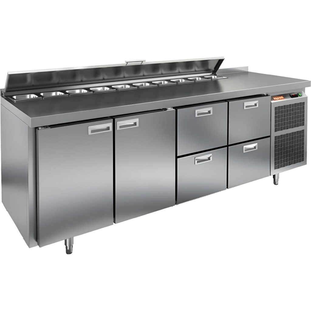 Каталог оборудования Холодильное оборудованиеСтолы охлаждаемыеСтолы холодильные для салатовСтол холодильный для салатов HiCold SL1-332GN (1/3) с крышкой Стол холодильный для салатов HiCold SL1-332GN (1/3) с крышкой Код товара: 064-851 Поделиться: WhatsAppTelegram СравнитьДобавить в КПВ избранное 0 290 692 ₽ В корзину 0 шт Под заказСамовывоз сегодня бесплатно Взять в кредит Купить в лизинг Получить консультацию в WhatsApp Описание Характеристики Отзывы 0 Инструкции 1 Стол холодильный для салатов HiCold SL1-332GN (1/3) предназначен для использования на предприятиях общественного питания и торговли. Он объединяет рабочую поверхность и охлаждаемый отсек, что делает его удобным решением для хранения, охлаждения и подготовки ингредиентов при приготовлении салатов, пиццы и других блюд. Такая конструкция позволяет повару работать быстрее и эффективнее, так как все необходимые продукты находятся под рукой. Корпус и столешница выполнены из прочной нержавеющей стали, устойчивой к коррозии и легко поддающейся санитарной обработке. Металлическая крышка защищает продукты от загрязнений и сохраняет их свежесть. Особенности модели: Электронная панель управления — точная настройка температурного режима. 8 выдвижных ящика — быстрое размещение и замена продуктов. Вместимость салат-бара — до 8 гастроемкостей глубиной до 100 мм. Автоматические доводчики — комфорт при загрузке/выгрузке. Легкозаменяемые магнитные уплотнители — надежная герметичность. Открытая агрегатная часть — быстрый доступ для обслуживания. Регулируемые по высоте ножки — устойчивость даже на неровном полу. Толщина столешницы, борта и теплоизоляции — 50 мм, что обеспечивает прочность и энергоэффективность конструкции. HiCold SL1-332GN (1/3) — практичное и удобное решение для профессиональной кухни, обеспечивающее удобную подготовку и хранение ингредиентов.Изображение товара, представленного на фото, может отличаться от его фактического вида. Показать все Габаритные размеры1835×700×850 ммДиапазон рабочей температурыот +2 до +10 °CРасположение агрегатаБоковое Материал столешницыНержавеющая Тип столаС дверьми и ящиками Тип двериГлухая Объём505 лКоличество дверей2 штТип гастроемкостейGN 1/3 Количество ящиков6 штРазмер полки530×325 ммНапряжение220 ВМощность0,46 кВтТип охлажденияДинамическое Тип оттайкиАвтоматическая СтолешницаС бортом Габариты в упаковке2000×850×1000 ммВес нетто120 кгВес брутто140 кгБрендHicold Оставить отзыв Еще никто не оставил отзыв на этот товар Декларация о соответствии.pdf Ранее просмотрено Под заказ 207 532 ₽ Стол холодильный для салатов HiCold SLE3-1111GN высокое стекло Под заказ 140 032 ₽ Стол холодильный для салатов HiCold SL2-11SN (1/6) без крышки Под заказ 243 982 ₽ Стол холодильный для салатов HiCold SL2-321GN (1/6) с крышкой Под заказ 198 892 ₽ Стол холодильный для салатов HiCold SL1-112GN (1/3) с крышкой Под заказ 140 481 ₽ Стол холодильный для салатов HiCold SL2-11GN (1/6) без крышки Под заказ 154 791 ₽ Стол холодильный для салатов HiCold SLE1-12GN (1/3) О с крышкой Под заказ 172 162 ₽ Стол холодильный для салатов HiCold SLE1-11111GN (1/3) О с крышкой
