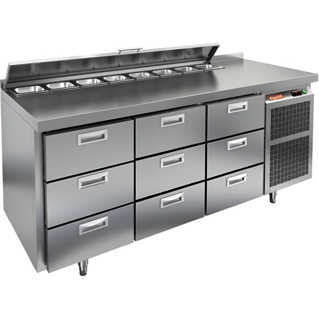 Такая конструкция позволяет повару работать быстрее и эффективнее, так как все необходимые продукты находятся под рукой. Корпус и столешница выполнены из прочной нержавеющей стали, устойчивой к коррозии и легко поддающейся санитарной обработке.Металлическая крышка защищает продукты от загрязнений и сохраняет их свежесть.