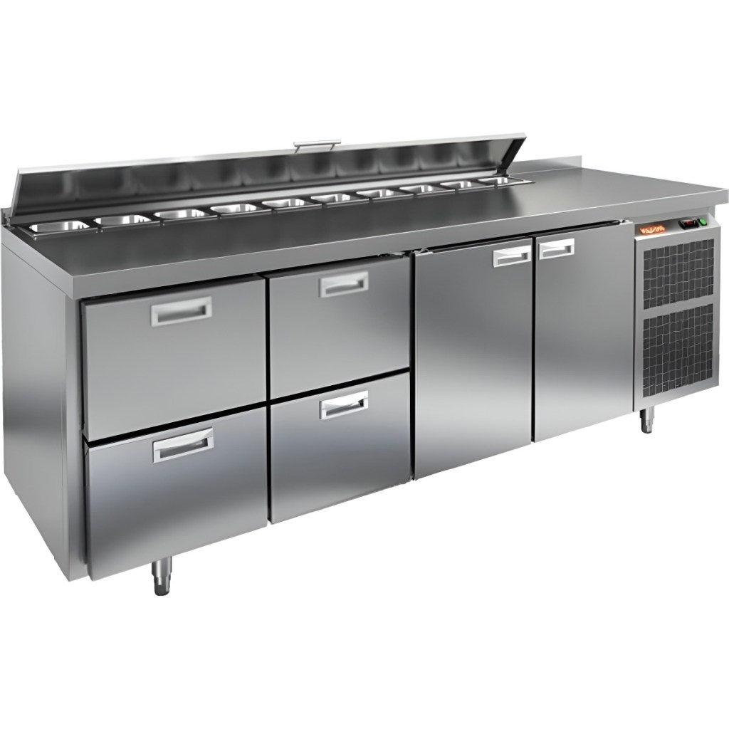 Каталог оборудования Холодильное оборудованиеСтолы охлаждаемыеСтолы холодильные для салатовСтол холодильный для салатов HiCold SL2-2211GN (1/6) с крышкой Стол холодильный для салатов HiCold SL2-2211GN (1/6) с крышкой Код товара: 064-823 Поделиться: WhatsAppTelegram СравнитьДобавить в КПВ избранное 0 258 922 ₽ В корзину 0 шт Под заказСамовывоз сегодня бесплатно Взять в кредит Купить в лизинг Получить консультацию в WhatsApp Описание Характеристики Отзывы 0 Инструкции 1 Стол холодильный для салатов HiCold SL2-2211GN (1/6) с крышкой предназначен для использования на предприятиях общественного питания и торговли. Он подходит для хранения, обработки и кратковременного охлаждения ингредиентов, применяемых при приготовлении пиццы, салатов, закусок и других блюд. Модель совмещает охлаждаемый объем и рабочую поверхность, что значительно повышает удобство и скорость работы персонала. Корпус и столешница выполнены из прочной и гигиеничной нержавеющей стали, устойчивой к влаге, загрязнениям и механическим повреждениям. Металлическая крышка защищает продукты от загрязнений и сохраняет их свежесть. Особенности модели: Электронная панель управления — точная настройка температуры. Салат-бар на 11 гастроемкостей — быстрый доступ к ингредиентам. 4 внутренних ящика — удобное размещение продуктов. 2 двери с автоматическими доводчиками — комфортный доступ к холодильному отсеку. Съёмные магнитные уплотнители — герметичность и стабильная температура. Открытая агрегатная часть — лёгкое обслуживание. Регулируемые ножки — установка на любой поверхности. Глубина гастроемкостей до 150 мм, столешница и теплоизоляция — 50 мм. Высота борта — 50 мм — защита рабочей поверхности. HiCold SL2-2211GN (1/6) с крышкой — универсальное и функциональное решение для профессиональной кухни, позволяющее оптимизировать рабочие процессы и повысить производительность за счет удобного хранения и быстрого доступа к ингредиентам.Изображение товара, представленного на фото, может отличаться от его фактического вида. Показать все Габаритные размеры2280×700×850 ммДиапазон рабочей температурыот +2 до +10 °CРасположение агрегатаБоковое Материал столешницыНержавеющая Тип столаС дверьми Тип двериГлухая Объём660 лКоличество дверей2 штТип гастроемкостейGN 1/6 Количество ящиков4 штРазмер полки530×325 ммНапряжение220 ВМощность0,48 кВтТип охлажденияДинамическое Тип оттайкиАвтоматическая СтолешницаС бортом Габариты в упаковке2420×850×1000 ммВес нетто155 кгВес брутто210 кгБрендHicold Оставить отзыв Еще никто не оставил отзыв на этот товар Декларация о соответствии.pdf Ранее просмотрено Под заказ 329 932 ₽ Стол холодильный для салатов HiCold SLE3-2222GN высокое стекло Под заказ 152 002 ₽ Стол холодильный для салатов HiCold SLE2-111SN (1/6) О З с крышкой Под заказ 166 222 ₽ Стол холодильный для салатов HiCold SL1-11GN (1/3) М с крышкой Под заказ 182 242 ₽ Стол холодильный для салатов HiCold SLE3-111GN полипропилен, с крышкой Под заказ 209 962 ₽ Стол холодильный для салатов HiCold SL1-133GN (1/3) с крышкой В наличии Цена по запросу Компрессорно-конденсаторный блок Север AHM-NTZ068 Под заказ 235 162 ₽ Стол холодильный для салатов HiCold SLE1-222GN (1/3) О без крышки