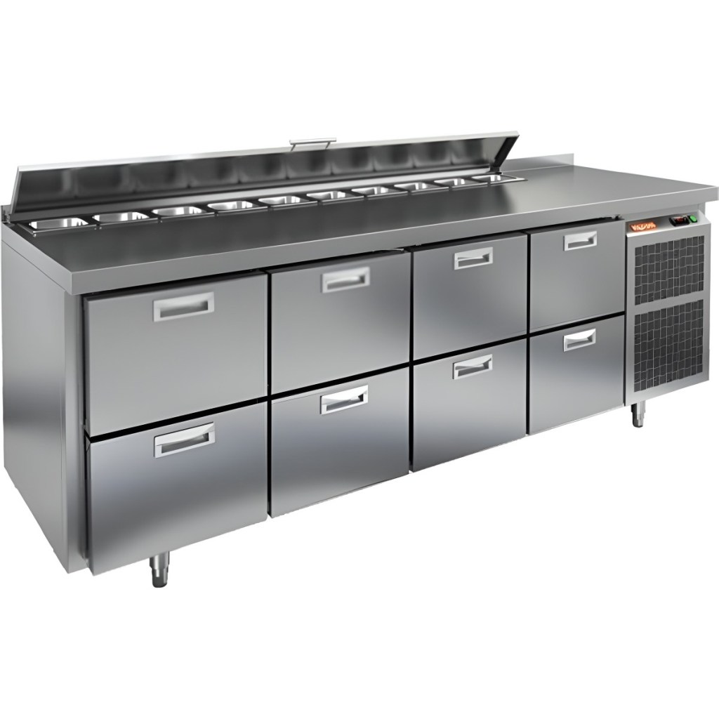 Модель совмещает охлаждаемый объем и рабочую поверхность, что значительно повышает удобство и скорость работы персонала. Корпус и столешница выполнены из прочной и гигиеничной нержавеющей стали, устойчивой к влаге, загрязнениям и механическим повреждениям. Металлическая крышка защищает продукты от загрязнений и сохраняет их свежесть.