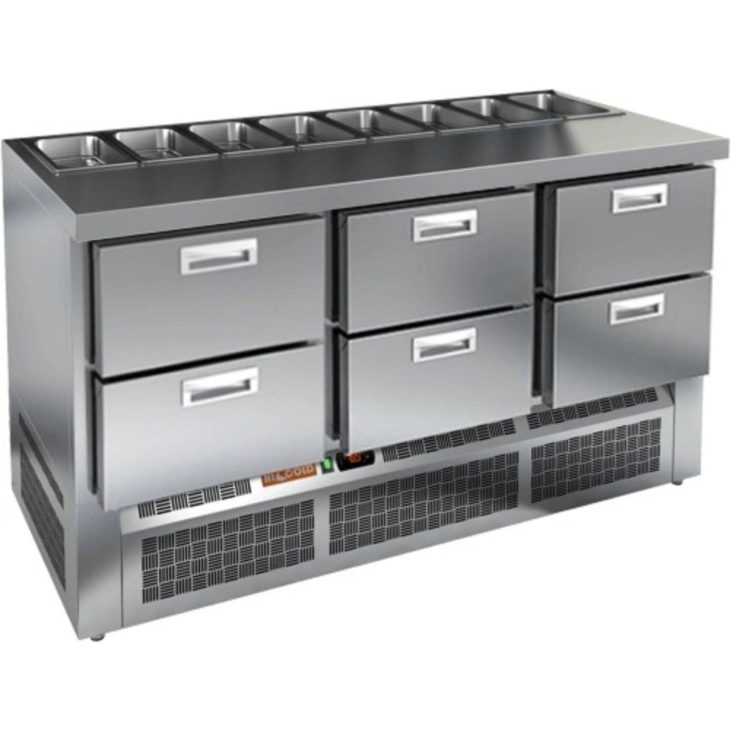 Модель сочетает в себе прочную рабочую поверхность и охлаждаемый внутренний объем, что упрощает процесс приготовления: все необходимые ингредиенты всегда под рукой. Корпус и столешница изготовлены из нержавеющей стали, устойчивой к воздействию влаги, механическим повреждениям и легко поддающейся очистке. Металлическая крышка защищает продукты от загрязнений и сохраняет их свежесть.