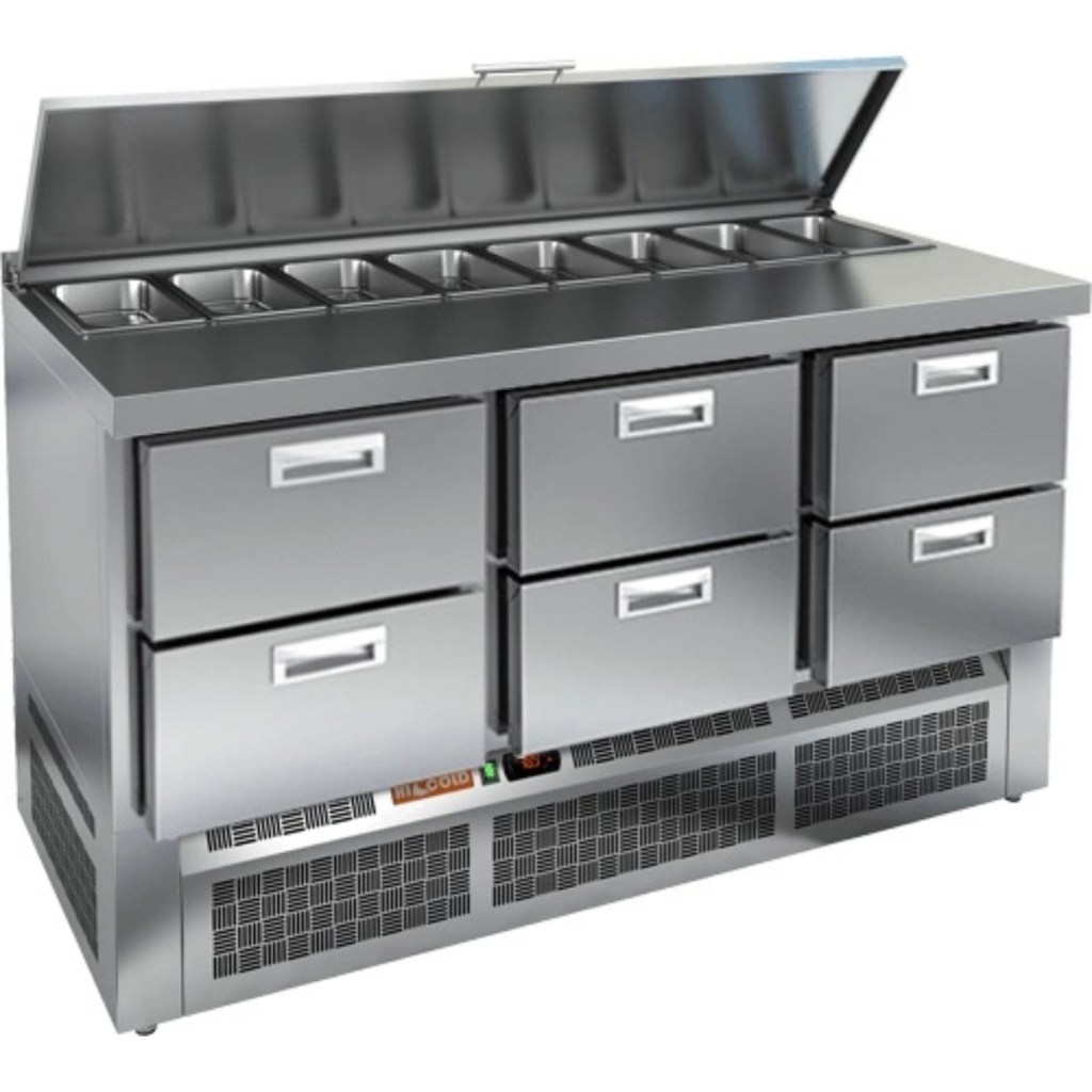 HiCold SLE1-222SN (1/3) с крышкой — это практичное и многофункциональное решение для профессиональной кухни. Благодаря вместительности, продуманной конструкции и надежной термоизоляции, стол позволяет организовать эффективное рабочее пространство и обеспечивает сохранность свежести продуктов в течение всего рабочего дня.