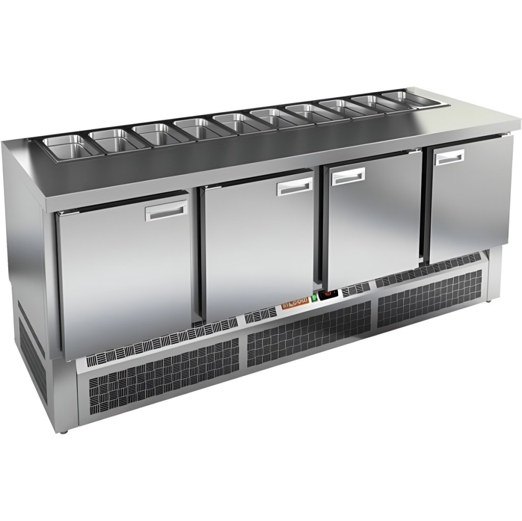 Каталог оборудования Холодильное оборудованиеСтолы охлаждаемыеСтолы холодильные для салатовСтол холодильный для салатов HiCold SLE2-1111GN (1/6) О без крышки Стол холодильный для салатов HiCold SLE2-1111GN (1/6) О без крышки Код товара: 064-861 Поделиться: WhatsAppTelegram СравнитьДобавить в КПВ избранное 0 168 382 ₽ В корзину 0 шт Под заказСамовывоз сегодня бесплатно Взять в кредит Купить в лизинг Получить консультацию в WhatsApp Описание Характеристики Отзывы 0 Инструкции 2 Стол холодильный для салатов HiCold SLE2-1111GN (1/6) О без крышки — это профессиональный салатный стол, предназначенный для использования в кафе, ресторанах, пиццериях и других предприятиях общественного питания. Он совмещает в себе просторную рабочую поверхность и охлаждаемый объем, обеспечивая удобство и эффективность при приготовлении различных блюд — от салатов до пиццы. Благодаря корпусу и столешнице из нержавеющей стали, оборудование устойчиво к коррозии, легко очищается и соответствует санитарным требованиям. Ключевые особенности: Электронная панель управления — обеспечивает точное регулирование температуры и удобство в эксплуатации. 4 вместительные полки формата GN 1/1 — позволяют организовать хранение большого объема продуктов и ингредиентов. Салат-бар вмещает до 11 гастроемкостей — оптимален для широкого ассортимента заготовок. Автоматические доводчики дверей с фиксацией — повышают удобство использования, особенно при загрузке и выгрузке продуктов. Магнитные уплотнители — легко заменяются и обеспечивают плотное прилегание, предотвращая утечку холода. Открытая агрегатная часть — облегчает техническое обслуживание. Регулируемые ножки — позволяют установить стол на любой поверхности, компенсируя неровности пола. Максимальная глубина гастроемкостей — 100 мм — подходит для хранения различных типов продуктов. Столешница толщиной 50 мм без борта — полноценная рабочая зона. Теплоизоляция толщиной 50 мм — сохраняет стабильный температурный режим и снижает энергозатраты. HiCold SLE2-1111GN (1/6) О без крышки — это функциональный и вместительный салатный стол, который идеально подходит для профессиональных кухонь с интенсивной загрузкой. Он сочетает в себе надежность, удобство и продуманную конструкцию для максимальной производительности на рабочем месте.Изображение товара, представленного на фото, может отличаться от его фактического вида. Показать все Габаритные размеры1970×700×850 ммДиапазон рабочей температурыот +2 до +10 °CРасположение агрегатаНижнее Материал столешницыНержавеющая Тип столаС дверьми Тип двериГлухая Объём505 лКоличество дверей4 штТип гастроемкостейGN 1/6 Размер полки530х325 ммНапряжение220 ВМощность0,46 кВтТип охлажденияДинамическое Тип оттайкиАвтоматическая СтолешницаБез борта Габариты в упаковке2200×850×1080 ммВес нетто135 кгВес брутто159 кгБрендHicold Оставить отзыв Еще никто не оставил отзыв на этот товар Паспорт на HICOLD SLE2-1111GN О.pdfДекларация о соответствии.pdf Ранее просмотрено Под заказ 96 400 ₽ Витрина кондитерская Carboma KC70 N 0,6-2 Light Паттерн (0105 Венге) хлебная, без стекла