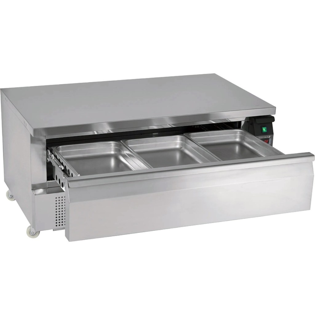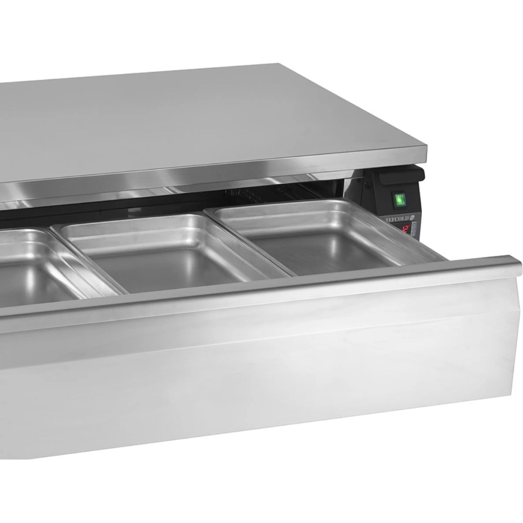 Каталог оборудования Холодильное оборудованиеСтолы охлаждаемыеСтолы холодильные комбинированныеСтол холодильно-морозильный TEFCOLD UD1-3 Стол холодильно-морозильный TEFCOLD UD1-3 Код товара: 010-375 Поделиться: WhatsAppTelegram СравнитьДобавить в КПВ избранное 0 158 753 ₽ В корзину 0 шт В наличииСамовывоз сегодня бесплатно Взять в кредит Купить в лизинг Получить консультацию в WhatsApp Описание Характеристики Отзывы 0 Инструкции 2 Стол холодильно-морозильный TEFCOLD UD1-3 предназначен для обработки ингредиентов и хранения охлаждённых и замороженных продуктов на предприятиях общественного питания и торговли. Модель оснащена расположенным снизу агрегатным отсеком, столешницей, гастрономированным выдвижным ящиком и кнопочной панелью управления с цифровым дисплеем. Корпус и внутренняя отделка выполнены из высококачественной нержавеющей стали SS304, обеспечивая долговечность и лёгкость в уходе. Особенности модели: Динамическое охлаждение с равномерной циркуляцией воздуха Автоматическая оттайка для удобства эксплуатации Электронный контроллер Dixell с цифровой температурной индикацией Возможность переключения между холодильным (1–4 °C) и морозильным (-21–-18 °C) режимами Самодиагностика с отображением неисправностей 4 поворотных колеса (2 с фиксацией) для лёгкой транспортировки Экологичный энергоэффективный хладагент R290, масса 0,07 кг Прочные износостойкие материалы и качественные комплектующие Класс энергоэффективности: E Климатический класс: 5 Формат гастроёмкостей: GN3/1, вместимость 3 шт. Общий объём: 116 л, полезный объём: 77 л Среднее энергопотребление: 6,05 кВт/сутки, 2208 кВт⋅ч/год Максимальная нагрузка: столешница 240 кг, ящик 60 кг Максимальная температура окружающей среды: 40 °C, относительная влажность до 40% Внутренние размеры: 1000×565×205 мм Уровень шума: 54 дБ TEFCOLD UD1-3 — универсальный и надёжный комбинированный стол для профессиональных кухонь. Он обеспечивает эффективное охлаждение и заморозку продуктов, удобство эксплуатации и долговечность благодаря прочным материалам и качественной сборке. Эргономичный дизайн и высокая энергоэффективность делают его оптимальным решением для предприятий общественного питания и торговли.Изображение товара, представленного на фото, может отличаться от его фактического вида. Показать все Габаритные размеры1230×700×600 ммТемпература морозильного отделенияот -21 до -18 °CТемпература холодильного отделенияот +1 до +4 °CРасположение агрегатаНижнее Материал столешницыНержавеющая Тип столаС ящиками Полезный объем77 лКоличество ящиков1 штТип гастроемкостейGN3/1 Климатический класс5 Уровень шума42 дБНапряжение230 ВМощность0,27 кВтРасход электроэнергии в сутки2,39 кВт/сутТип охлажденияДинамический Тип оттайкиАвтоматическая ХладагентR290 Габариты в упаковке1310×770×740 ммВес нетто90 кгВес брутто105 кгБрендTefcold Оставить отзыв Еще никто не оставил отзыв на этот товар Инструкция на TEFCOLD UD1-3.pdfСпецификация на TEFCOLD UD1-3.pdf Похожие товары Перейти в каталог Под заказ 111 051 ₽ Стол холодильный среднетемпературный HiCold GNG 1 BR2 HT Под заказ 79 911 ₽ Стол холодильный среднетемпературный HiCold GN 1/TN W Под заказ 79 461 ₽ Стол холодильный среднетемпературный HiCold SN 1/TN W Под заказ 104 947 ₽ Стол холодильный среднетемпературный Abat СХС-70 с бортом (дверь) С этим товаром покупают Под заказ 99 931 ₽ Шкаф холодильный Abat ШХс-0,5-02 Ранее просмотрено Под заказ 112 617 ₽ Шкаф морозильный МХМ К