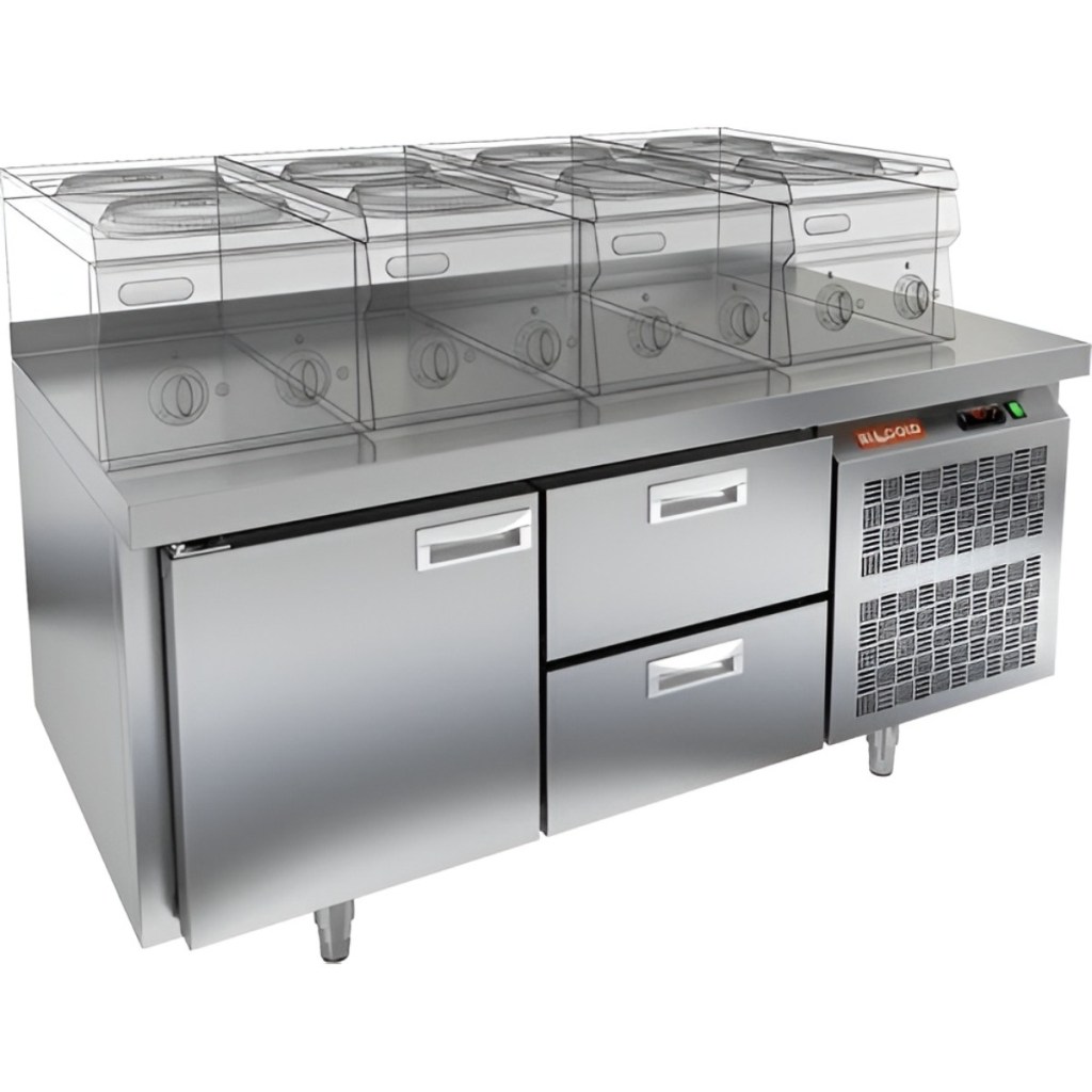 Каталог оборудования Холодильное оборудованиеСтолы охлаждаемыеСтолы холодильные под тепловое оборудованиеСтол охлаждаемый HiCold GN 12/TN LT SH О под тепловое оборудование Стол охлаждаемый HiCold GN 12/TN LT SH О под тепловое оборудование Код товара: 065-293 Поделиться: WhatsAppTelegram СравнитьДобавить в КПВ избранное 0 140 211 ₽ В корзину 0 шт Под заказСамовывоз сегодня бесплатно Взять в кредит Купить в лизинг Получить консультацию в WhatsApp Описание Характеристики Отзывы 0 Инструкции 2 Стол охлаждаемый HiCold GN 12/TN LT SH О под тепловое оборудование предназначен для обработки ингредиентов и временного хранения скоропортящихся продуктов и напитков на предприятиях общественного питания и торговли. Устройство совмещает функции рабочей поверхности и холодильной камеры. Столешница рассчитана на установку теплового оборудования: под рабочей поверхностью встроен ДСП-лист, который укрепляет конструкцию и препятствует проникновению тепла внутрь. Такое решение обеспечивает дополнительную жесткость, позволяет рационально использовать рабочее пространство и повышает эффективность работы на кухне. Внимание! На фото показан стол с бортом. Данная модель поставляется без борта. Особенности: 1 распашная дверь и 2 выдвижные секции — удобный доступ к хранимым продуктам. Автоматические доводчики дверей с фиксатором открытого положения повышают эргономику и способствуют сохранению холода. Легкозаменяемые магнитные уплотнители обеспечивают плотное прилегание дверей и лёгкость в обслуживании. Открытая агрегатная часть упрощает доступ к компрессору при техническом обслуживании. Конструкция на низких ножках обеспечивает стабильность и удобство эксплуатации. Толщина столешницы без борта — 50 мм обеспечивает прочность рабочей поверхности. Толщина теплоизоляции — 50 мм способствует энергоэффективности и стабильному температурному режиму. HiCold GN 12/TN LT SH О — это надёжное и удобное оборудование, сочетающее охлаждение и рабочее пространство. Благодаря продуманной конструкции и совместимости с гастроемкостями GN 1/1, стол станет практичным решением для кухни любого профессионального уровня.Изображение товара, представленного на фото, может отличаться от его фактического вида. Показать все Габаритные размеры1390×700×610 ммДиапазон рабочей температурыот -2 до +10 °CМатериал столешницыНержавеющая Расположение агрегатаБоковое Объём255 лТип столаС дверьми и ящиками Тип двериГлухая Количество дверей1 штКоличество ящиков2 штРазмер полки530×325 ммНапряжение220 ВМощность0,22 кВтТип охлажденияДинамический Тип оттайкиАвтоматическая СтолешницаБез борта Габариты в упаковке1550×850×850 ммВес нетто128 кгВес брутто148 кгБрендHicold Оставить отзыв Еще никто не оставил отзыв на этот товар Паспорт на HICOLD GN 12TN LT SH О.pdfДекларация о соответствии.pdf Похожие товары Перейти в каталог В наличии 77 661 ₽ Стол холодильный среднетемпературный HiCold GN 11/TN W Под заказ 125 670 ₽ Стол холодильный среднетемпературный Abat СХС-70-01 с бортом (дверь, дверь) С этим товаром покупают В наличии 201 690 ₽ Шкаф морозильный Полюс Carboma F1400 В наличии 195 030 ₽ Плита индукционная Аbat КИП-47Н Ранее просмотрено Под заказ 276 420 ₽ Горка холодильная МХМ Купец ВХСп-2,5 new с дверьми стекло (боковины стеклопакет) Под заказ 702 475 ₽ Компрессорно-конденсаторный блок Север AHM-ZF49-B6 Под заказ Цена по запросу Горка холодильная Dazzl Vega 080 H210 Plug-in 190 фруктовая Под заказ 4