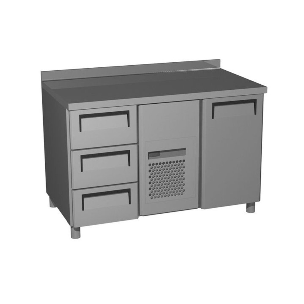 Стол холодильный среднетемпературный Carboma T70 M2-1 (2GN/NT Полюс) с бортом (9006-2 корпус серый 1 дверь, 3 ящ) — профессиональное оборудование для предприятий общественного питания и торговли. Стол предназначен для раскатки теста, подготовки ингредиентов, охлаждения и кратковременного хранения скоропортящихся продуктов и напитков. Стол оснащён 2 полками, тремя выдвижными ящиками и регулируемыми ножками высотой от 90 до 110 мм.