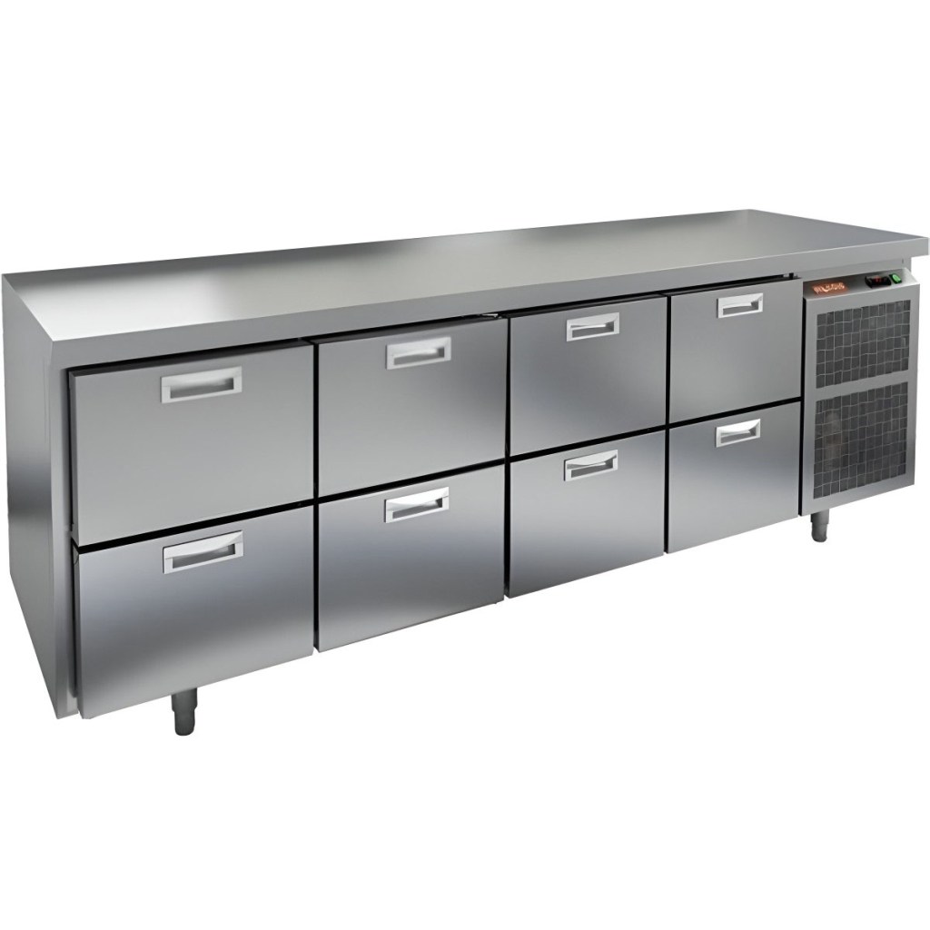 Каталог оборудования Холодильное оборудованиеСтолы охлаждаемыеСтолы холодильные среднетемпературныеСтол холодильный среднетемпературный HiCold GN 2222/TN О М Стол холодильный среднетемпературный HiCold GN 2222/TN О М Код товара: 065-427 Поделиться: WhatsAppTelegram СравнитьДобавить в КПВ избранное 0 312 291 ₽ В корзину 0 шт Под заказСамовывоз сегодня бесплатно Взять в кредит Купить в лизинг Получить консультацию в WhatsApp Описание Характеристики Отзывы 0 Инструкции 2 Стол холодильный среднетемпературный HiCold GN 2222/TN О М — это профессиональное оборудование, предназначенное для кратковременного хранения скоропортящихся продуктов и напитков, а также удобной подготовки ингредиентов на предприятиях общественного питания и торговли. Модель сочетает функциональность, надежность и эргономичный дизайн. Ключевые особенности: 8 выдвижных ящиков обеспечивают удобный доступ к продуктам и рациональную организацию пространства. Электронная панель управления позволяет просто и точно регулировать температуру. Автоматические доводчики обеспечивают мягкое и плотное закрывание ящиков. Легкозаменяемые магнитные уплотнители гарантируют надежную герметичность. Колёса (2 со стопором, 2 без стопора) — обеспечивают мобильность и удобство размещения стола на кухне. Корпус и столешница из нержавеющей стали обеспечивают долговечность, устойчивость к коррозии и простоту в уходе. Столешница без борта, толщина 50 мм — увеличенная рабочая площадь, устойчивая к нагрузкам и механическому воздействию. Толщина теплоизоляции — 50 мм способствует энергоэффективности и стабильному температурному режиму. Рабочий температурный режим сохраняется при температуре окружающей среды от +12 до +37 °C. HiCold GN 2222/TN О М — это многофункциональный холодильный стол, идеально подходящий для профессиональной кухни. Конструкция позволяет удобно распределять ингредиенты, а эргономичные выдвижные модули обеспечивают быстрый доступ к продуктам. Высокое качество материалов, надежные комплектующие и простота эксплуатации делают этот стол незаменимым помощником в условиях интенсивной ежедневной работы.Изображение товара, представленного на фото, может отличаться от его фактического вида. Показать все Габаритные размеры2280×700×850 ммДиапазон рабочей температурыот -2 до +10 °CРасположение агрегатаБоковое Материал столешницыНержавеющая Тип столаС ящиками Объём660 лКоличество ящиков8 штНапряжение220 ВМощность0,48 кВтТип охлажденияДинамический Тип оттайкиАвтоматическая СтолешницаБез борта Габариты в упаковке2420×850×1000 ммВес нетто150 кгВес брутто190 кгБрендHicoldВсе холодильные столы HicoldВсе нержавеющие холодильные столы Все холодильные столы без борта Оставить отзыв Еще никто не оставил отзыв на этот товар Паспорт на HICOLD GN 2222/TN О М.pdfДекларация о соответствии.pdf Похожие товары Перейти в каталог Под заказ 148 851 ₽ Стол холодильный среднетемпературный HiCold SN 1111/TN W В наличии 119 067 ₽ Стол холодильный среднетемпературный Polair TM4GN-GС С этим товаром покупают В наличии 181 658 ₽ Шкаф холодильный универсальный Polair CV 114-G В наличии 9 838 ₽ Индукционная плита HURAKAN HKN-ICW35ML WOK
