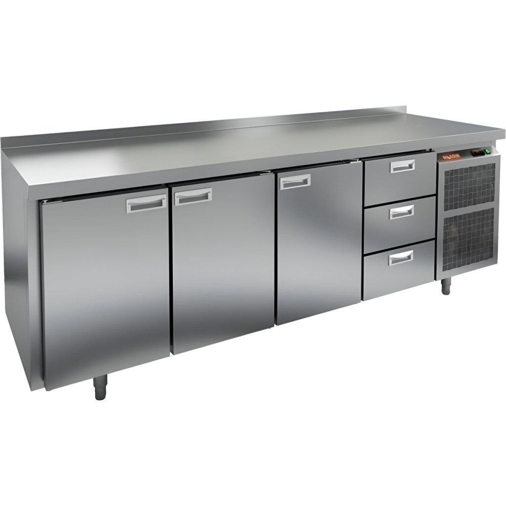 Каталог оборудования Холодильное оборудованиеСтолы охлаждаемыеСтолы холодильные среднетемпературныеСтол холодильный среднетемпературный HiCold SN 1113/TN Стол холодильный среднетемпературный HiCold SN 1113/TN Код товара: 001-329 Поделиться: WhatsAppTelegram СравнитьДобавить в КПВ избранное 0 212 841 ₽ В корзину 0 шт Под заказСамовывоз сегодня бесплатно Взять в кредит Купить в лизинг Получить консультацию в WhatsApp Описание Характеристики Отзывы 0 Инструкции 2 Стол холодильный среднетемпературный HiCold SN 1113/TN сочетает в себе рабочую поверхность для раскатывания теста и обработки ингредиентов, а также охлаждающую камеру для кратковременного хранения скоропортящихся продуктов и напитков. Оборудование предназначено для предприятий общественного питания и обеспечивает комфортную и эффективную работу на кухне. Особенности: Цельнозаливной корпус из нержавеющей стали с 50 мм теплоизоляцией, обеспечивающий высокую герметичность и жесткость конструкции. Надежный электронный блок управления с несколькими режимами оттаивания для удобства эксплуатации. Вентилятор повышенной мощности, обеспечивающий принудительную вентиляцию по всему объему стола и равномерное быстрое охлаждение. Интеллектуальное размораживание и термическое выпаривание конденсата для поддержания оптимальных условий внутри камеры. Новая экономичная модель компрессора, снижающая энергопотребление. Облегченный доступ к агрегату для удобства сервисного обслуживания. Двери с петлями-доводчиками, повышающими комфорт и безопасность при эксплуатации. Регулируемые по высоте ножки для адаптации к рабочей поверхности и неровностям пола. Максимальная нагрузка на полку — 50 кг. Высота борта — 50 мм для удобства и безопасности работы. Рабочая температура окружающего воздуха — от 12 до 37 °C. HiCold SN 1113/TN — это надежное, эргономичное и энергоэффективное решение для профессиональной кухни, сочетающее качественные материалы и современные технологии для оптимального хранения и подготовки продуктов.Изображение товара, представленного на фото, может отличаться от его фактического вида. Показать все Габаритные размеры2280×600×850 ммДиапазон рабочей температурыот -2 до +10 °CРасположение агрегатаБоковое Материал столешницыНержавеющая Тип столаС дверьми и ящиками Тип двериГлухая Объём570 лКоличество дверей3 штКоличество ящиков3 штНапряжение220 ВТип охлажденияДинамический Тип оттайкиАвтоматическая СтолешницаС бортом Вес нетто142 кгБрендHicoldВсе холодильные столы HicoldВсе оцинкованные холодильные столы Все холодильные столы с бортом Оставить отзыв Еще никто не оставил отзыв на этот товар Паспорт на HICOLD SN 1113/TN.pdfДекларация о соответствии.pdf Похожие товары Перейти в каталог Под заказ 197 541 ₽ Стол холодильный среднетемпературный HiCold SN 1112/TN Под заказ 258 741 ₽ Стол холодильный среднетемпературный HiCold SN 1133/TN В наличии 132 149 ₽ Стол холодильный среднетемпературный Cooleq GN4100TN С этим товаром покупают Под заказ 95 465 ₽ Жарочная поверхность Аbat АКО-80/1Н-С-02 Ранее просмотрено Под заказ 275 931 ₽ Стол холодильный среднетемпературный HiCold GN 1133 BR2 TN Под заказ 218 691 ₽ Стол холодильный среднетемпературный HiCold GNE 1111/TN BOX