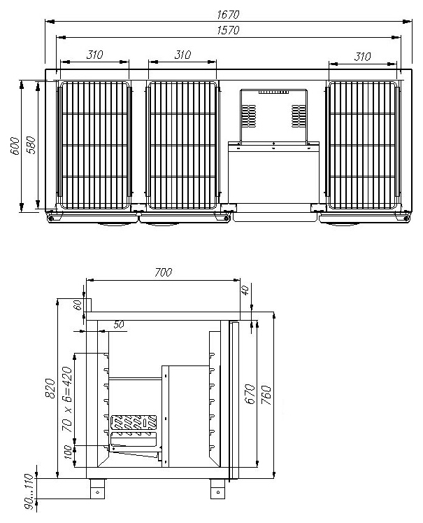 Модель оснащена 6 полками и регулируемыми ножками высотой от 90 до 110 мм. Цельнозаливной корпус выполнен из нержавеющей стали с теплоизоляцией из пенополиуретана для эффективного удержания температуры, дверцы — из металла, столешница оснащена бортиком.