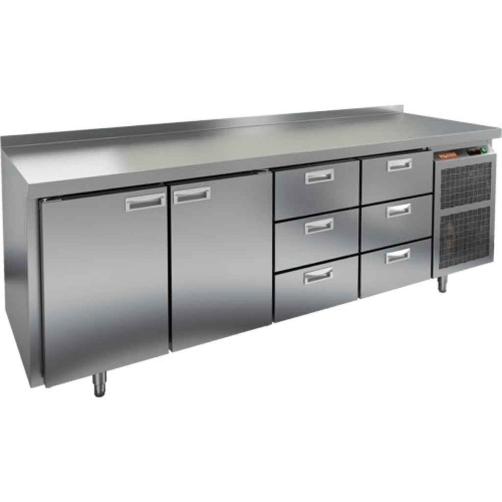 Каталог оборудования Холодильное оборудованиеСтолы охлаждаемыеСтолы морозильные низкотемпературныеСтол морозильный HiCold SN 1133/BT Стол морозильный HiCold SN 1133/BT Код товара: 065-191 Поделиться: WhatsAppTelegram СравнитьДобавить в КПВ избранное 0 297 802 ₽ В корзину 0 шт Под заказСамовывоз сегодня бесплатно Взять в кредит Купить в лизинг Получить консультацию в WhatsApp Описание Характеристики Отзывы 0 Инструкции 2 Стол морозильный HiCold SN 1133/BT — это универсальное решение для профессиональных кухонь и предприятий общественного питания. Он объединяет рабочую поверхность для раскатки теста и подготовки ингредиентов с морозильной камерой для хранения продуктов и полуфабрикатов, что позволяет эффективно организовать рабочее место и ускорить процесс приготовления блюд. Особенности: Цельнозаливной корпус из нержавеющей стали с 50 мм изоляцией обеспечивает высокую герметичность и прочность конструкции. Электронный блок управления с повышенной надежностью и несколькими режимами оттаивания. Вентилятор увеличенной мощности и принудительная вентиляция по всему объему стола обеспечивают равномерное и быстрое охлаждение. Интеллектуальное размораживание для удобного и безопасного использования. Термическое выпаривание конденсата предотвращает образование влаги на рабочей поверхности. Новая экономичная модель компрессора снижает энергопотребление. Облегченный доступ к агрегату упрощает сервисное обслуживание. Двери с петлями-доводчиками и ПЭН (проволочный электронагреватель) по контуру стола предотвращают примерзание. Максимальная нагрузка на полку — 50 кг, что позволяет хранить тяжелые продукты и оборудование. Высота борта рабочей поверхности — 50 мм, обеспечивающая удобство работы и предотвращение скатывания ингредиентов. Рабочая температура окружающего воздуха — от 12 до 32 °C, что делает стол универсальным для различных условий эксплуатации. HiCold SN 1133/BT сочетает функциональность морозильной камеры и удобство рабочей поверхности. Прочные материалы, интеллектуальные системы охлаждения и размораживания, а также продуманные детали конструкции делают его надежным и долговечным оборудованием. Этот стол оптимален для предприятий общественного питания, где требуется быстрое охлаждение, заморозка и комфортная организация рабочего процесса.Изображение товара, представленного на фото, может отличаться от его фактического вида. Показать все Габаритные размеры2280×600×850 ммДиапазон рабочей температурыот -18 до -10 °CРасположение агрегатаБоковое Материал столешницыНержавеющая Тип столаС ящиками Тип двериГлухая Объём570 лКоличество дверей2 штКоличество полок2 штКоличество ящиков6 штРазмер полки430×325 ммНапряжение220 ВМощность0,75 кВтТип охлажденияДинамический Тип оттайкиАвтоматическая СтолешницаС бортом Габариты в упаковке2400×750×1000 ммВес нетто151 кгВес брутто249 кгБрендHicoldВсе морозильные столы HicoldВсе морозильные столы с бортом Оставить отзыв Еще никто не оставил отзыв на этот товар Паспорт на HICOLD SN 1133/BT.pdfДекларация о соответствии.pdf Похожие товары Перейти в каталог Под заказ 79 911 ₽ Стол холодильный среднетемпературный HiCold GN 1/TN W Под заказ 107 046 ₽ Стол холодильный среднетемпературный Abat СХС-70 с бортом (дверь) С этим товаром покупают В наличии 93 502 ₽ Шкаф холодильный Полюс Carboma R560 В наличии 58 095 ₽ Витрина холодильная для ингредиентов HICOLD VRTU 1835 1/3 Ране