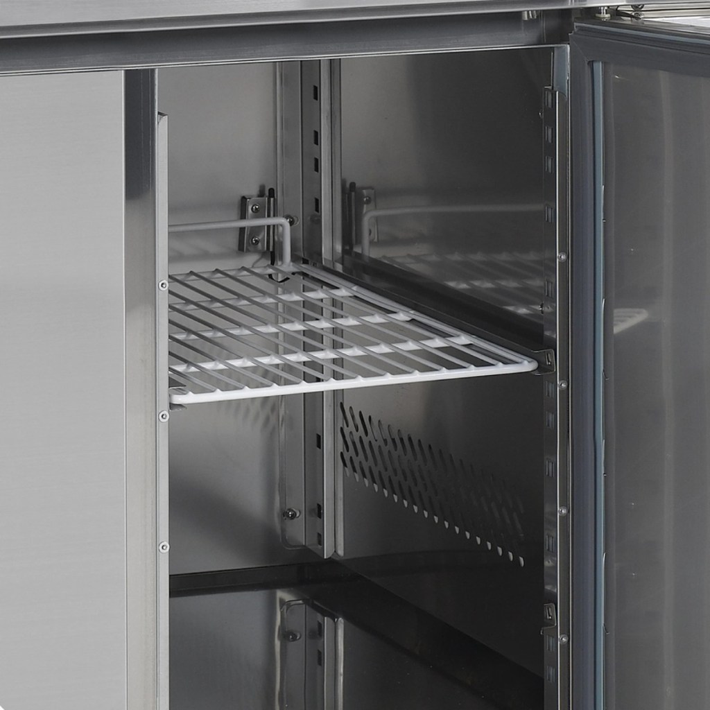 Каталог оборудования Холодильное оборудованиеСтолы охлаждаемыеСтолы морозильные низкотемпературныеСтол морозильный TEFCOLD CF7310 Стол морозильный TEFCOLD CF7310 Код товара: 010-257 Поделиться: WhatsAppTelegram СравнитьДобавить в КПВ избранное 0 218 857 ₽ В корзину 0 шт В наличииСамовывоз сегодня бесплатно Взять в кредит Купить в лизинг Получить консультацию в WhatsApp Описание Характеристики Отзывы 0 Стол морозильный TEFCOLD CF7310 — профессиональное оборудование для раскатки теста, обработки, заморозки и долговременного хранения продуктов, полуфабрикатов, напитков и мороженого на предприятиях общественного питания и торговли. Корпус и внутренняя отделка выполнены из нержавеющей стали AISI 304, что обеспечивает долговечность, гигиеничность и лёгкость ухода. Особенности модели: Динамическое охлаждение — равномерное распределение холода по всему объёму Автоматическое размораживание — поддержание стабильной работы без образования наледи Электронный термостат и градусник — точное управление температурой Хладагент R404a, подзарядка — 0,09 кг Съёмная столешница с бортом — удобство работы и уборки Самозакрывающиеся двери 3 полки GN1/1 (530 × 325 мм) — эффективная организация внутреннего пространства Регулируемые по высоте ножки — устойчивость на любой поверхности Климатический класс 4 — работа при температуре до +30 °C Полезный объём: 402 л Мощность: 0,7 кВт Энергопотребление: 10,15 кВт/сутки Внутренние размеры: 1337 × 530 × 589 мм Уровень шума: 42 дБ TEFCOLD CF7310 — надёжный и функциональный морозильный стол для профессиональных кухонь. Он сочетает рабочую поверхность для раскатки теста с вместительной морозильной камерой, обеспечивая удобство работы, долговременное хранение продуктов и стабильный температурный режим.Изображение товара, представленного на фото, может отличаться от его фактического вида. Показать все Габаритные размеры1795×700×980 ммДиапазон рабочей температурыот -20 до -10 °CРасположение агрегатаБоковое Материал столешницыНержавеющая Тип столаС дверьми Тип двериГлухая Общий объем417 лПолезный объем402 лКоличество дверей3 штРазмер полки530×325 ммНапряжение230 ВРасход электроэнергии в сутки6,95 кВт/сутТип охлажденияДинамический Тип оттайкиАвтоматическая Климатический класс4 ХладагентR404a СтолешницаС бортом Уровень шума42 дБГабариты в упаковке1830×750×1010 ммВес нетто152 кгВес брутто162 кгБрендTefcold Оставить отзыв Еще никто не оставил отзыв на этот товар Похожие товары Перейти в каталог Под заказ 125 817 ₽ Стол морозильный HURAKAN HKN-GN3BT Под заказ 166 404 ₽ Стол морозильный Abat СХН-70-02 без борта (дверь, дверь, дверь) С этим товаром покупают В наличии 201 690 ₽ Шкаф морозильный Полюс Carboma F1400 Ранее просмотрено Под заказ 199 161 ₽ Стол морозильный HiCold SN 112/BT P (без агрегата) Под заказ 134 992 ₽ Стол холодильный среднетемпературный HiCold GNG 11 HT О В наличии Цена по запросу Бункер для льда Brema Bin 350 (для G 280-510, TM 250-450) Под заказ 703 704 ₽ Бункер для льда Scotsman SIS 300 Под заказ 234 540 ₽ Горка холодильная Carboma FC20-07 VV 1,3-1 0030 STANDARD фронт X1 (версия 2.0) (9006-9005) (бок металл с зеркалом) В наличии 140 243 ₽ Шкаф холодильный Tatra TRC700 TN Под заказ 242 131 ₽ Бонета морозильная МХМ Купец ВХНо-2,4 (с надстройкой)