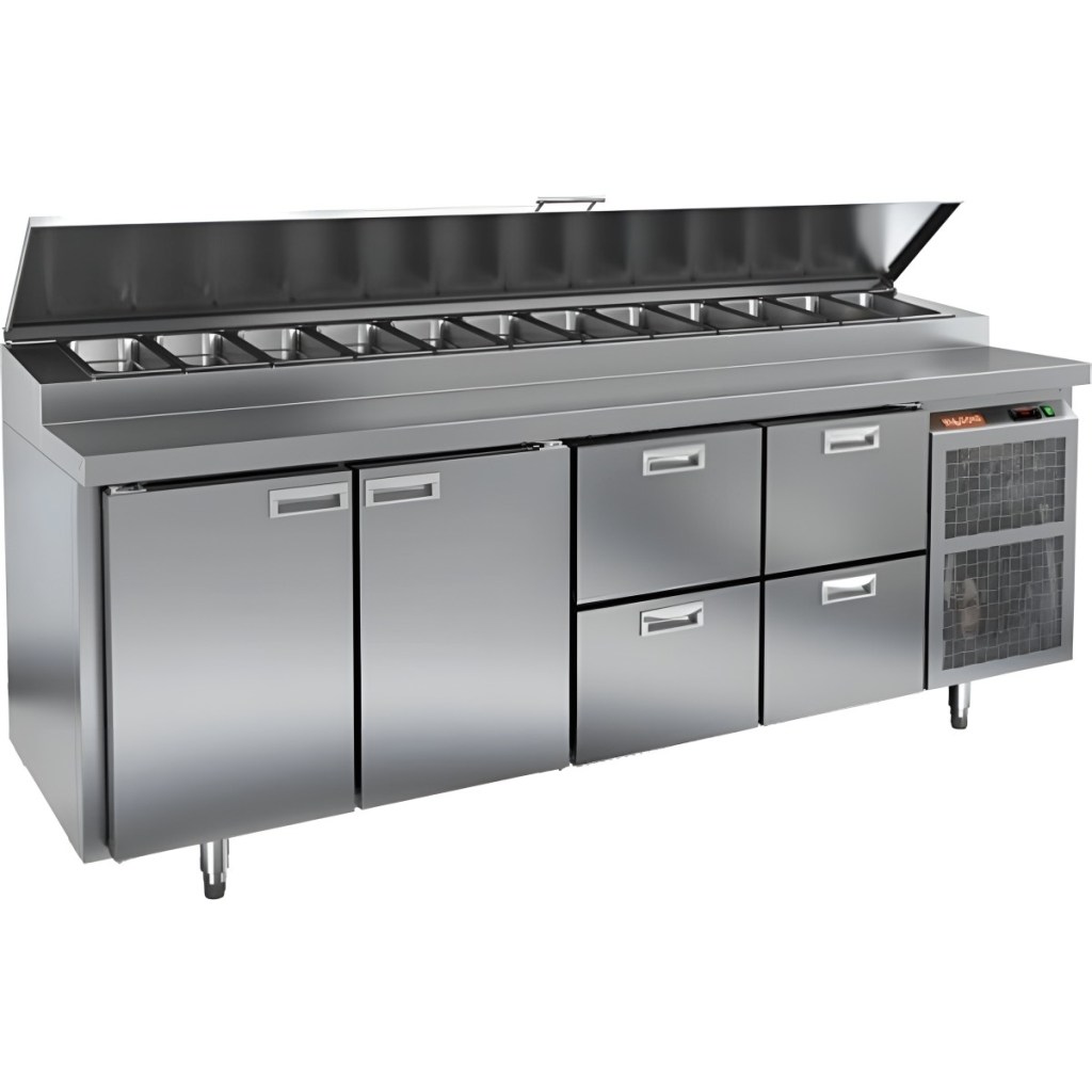 Каталог оборудования Холодильное оборудованиеСтолы охлаждаемыеСтолы холодильные для пиццыСтол холодильный для пиццы HiCold PZ1-1122/GN (1/3H) Стол холодильный для пиццы HiCold PZ1-1122/GN (1/3H) Код товара: 064-694 Поделиться: WhatsAppTelegram СравнитьДобавить в КПВ избранное 0 311 842 ₽ В корзину 0 шт Под заказСамовывоз сегодня бесплатно Взять в кредит Купить в лизинг Получить консультацию в WhatsApp Описание Характеристики Отзывы 0 Стол холодильный для пиццы HiCold PZ1-1122GN (1/3H) — профессиональное оборудование для ресторанов, кафе и предприятий торговли. Он совмещает рабочую поверхность для раскатки теста и подготовки ингредиентов с охлаждаемым блоком для кратковременного хранения продуктов и напитков. Корпус и столешница выполнены из нержавеющей стали, что гарантирует долговечность и лёгкость ухода. Основные особенности: Динамическая система охлаждения — равномерное распределение холода Автоматическая оттайка — поддержка стабильной работы без наледи Электронная панель управления — точная настройка температуры и режимов 2 вместительные полки формата GN 1/1 4 выдвижных ящика для хранения дополнительных ингредиентов Автоматические доводчики дверей с фиксатором открытого положения — удобство загрузки и выгрузки Легкозаменяемые магнитные уплотнители — поддержание герметичности Открытая агрегатная часть — облегчённый доступ к техническим элементам Регулируемые по высоте ножки — установка по уровню Максимальная глубина гастроёмкостей: 150 мм (крайняя правая — 100 мм) Глубина рабочей поверхности: 324 мм Толщина столешницы и теплоизоляции: 50 мм Вместимость салат-бара: до 12 гастроёмкостей Стол холодильный HiCold PZ1-1122GN (1/3H) — функциональный и удобный стол для пиццы и салатов, совмещающий рабочую поверхность, охлаждаемый блок, полки и ящики для хранения. Разная глубина гастроёмкостей и продуманная организация рабочего пространства делают его оптимальным решением для профессиональной кухни.Изображение товара, представленного на фото, может отличаться от его фактического вида. Показать все Габаритные размеры2280×700×1000 ммДиапазон рабочей температурыот +2 до +10 °CРасположение агрегатаБоковое Материал столешницыНержавеющая Тип столаС дверьми и ящиками Тип двериГлухая Объём660 лТип гастроемкостейGN 1/3 Количество дверей2 штКоличество ящиков4 штРазмер полки530×325 ммНапряжение220 ВМощность0,73 кВтТип охлажденияДинамическое Тип оттайкиАвтоматическая Габариты в упаковке2420×850×1080 ммВес нетто208 кгВес брутто228 кгБрендHicoldВсе холодильные столы для пиццы HicoldВсе нержавеющие холодильные столы для пиццы Оставить отзыв Еще никто не оставил отзыв на этот товар Ранее просмотрено В наличии 671 ₽ Гастроемкость HURAKAN GN-P 1/1-40