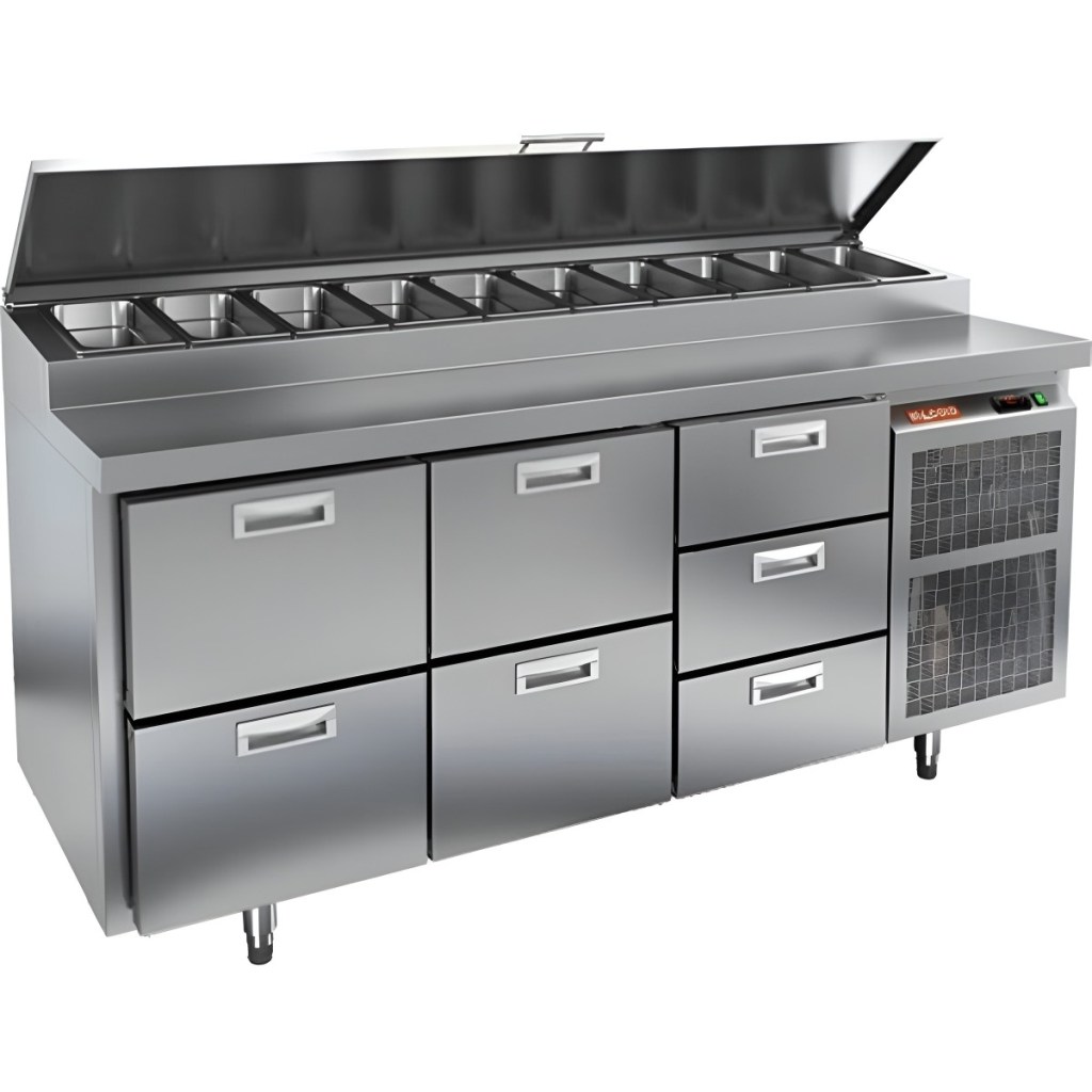 Каталог оборудования Холодильное оборудованиеСтолы охлаждаемыеСтолы холодильные для пиццыСтол холодильный для пиццы HiCold PZ1-223GN (1/3H) Стол холодильный для пиццы HiCold PZ1-223GN (1/3H) Код товара: 064-711 Поделиться: WhatsAppTelegram СравнитьДобавить в КПВ избранное 0 321 472 ₽ В корзину 0 шт Под заказСамовывоз сегодня бесплатно Взять в кредит Купить в лизинг Получить консультацию в WhatsApp Описание Характеристики Отзывы 0 Стол холодильный для пиццы HiCold PZ1-223GN (1/3H) — профессиональное оборудование для предприятий общественного питания и торговли. Он сочетает рабочую поверхность для раскатки теста и подготовки ингредиентов с охлаждаемым блоком для кратковременного хранения скоропортящихся продуктов и напитков. Такое решение обеспечивает максимальное удобство — все необходимые компоненты всегда находятся под рукой. Корпус и столешница выполнены из нержавеющей стали, что гарантирует долговечность, устойчивость к повреждениям и лёгкость ухода. Основные особенности: Нержавеющая столешница и корпус — прочность, гигиеничность и лёгкость очистки Динамическая система охлаждения — равномерное распределение холода Автоматическая оттайка — стабильная работа без образования наледи Электронная панель управления — точная настройка температуры 7 выдвижных ящиков — удобная организация внутреннего пространства без дверцы Автоматические доводчики ящиков — комфорт при работе Легкозаменяемые магнитные уплотнители — поддержание герметичности Открытая агрегатная часть — лёгкий доступ для обслуживания Регулируемые по высоте ножки — установка на неровных поверхностях Максимальная глубина гастроёмкостей: 100 мм Глубина рабочей поверхности: 324 мм Толщина столешницы и теплоизоляции: 50 мм Вместимость салат-бара: до 10 гастроёмкостей Стол холодильный HiCold PZ1-223GN (1/3H) — надёжный и функциональный холодильный стол для пиццы и салатов. Отсутствие дверцы и продуманная система хранения обеспечивают быстрый доступ к ингредиентам, удобство эксплуатации и высокую производительность на профессиональной кухне.Изображение товара, представленного на фото, может отличаться от его фактического вида. Показать все Габаритные размеры1835×700×1000 ммДиапазон рабочей температурыот +2 до +10 °CРасположение агрегатаБоковое Материал столешницыНержавеющая Тип столаС ящиками Объём505 лТип гастроемкостейGN 1/3 Количество ящиков7 штНапряжение220 ВМощность0,5 кВтТип охлажденияДинамическое Тип оттайкиАвтоматическая Габариты в упаковке2000×850×1140 ммВес нетто172 кгВес брутто200 кгБрендHicoldВсе холодильные столы для пиццы HicoldВсе нержавеющие холодильные столы для пиццы Оставить отзыв Еще никто не оставил отзыв на этот товар Ранее просмотрено Под заказ 224 182 ₽ Стол холодильный для пиццы HiCold PZ2-111GN (1/6) стекло Под заказ 312 652 ₽ Стол холодильный для пиццы HiCold PZ3-113/GN камень Под заказ 188 722 ₽ Стол холодильный для пиццы HiCold PZ2-11/GN (1/6) З Под заказ 343 342 ₽ Стол холодильный для пиццы HiCold PZE3-222/GN камень