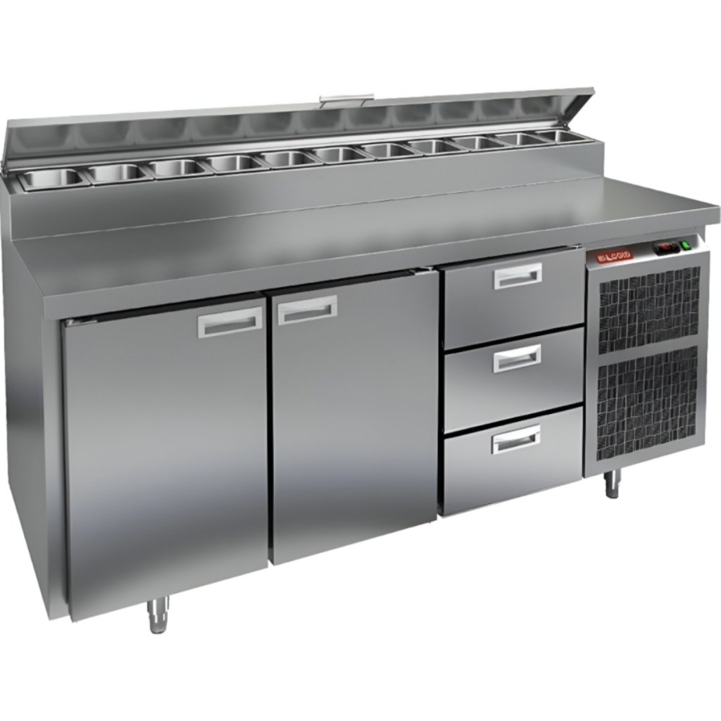 Каталог оборудования Холодильное оборудованиеСтолы охлаждаемыеСтолы холодильные для пиццыСтол холодильный для пиццы HiCold PZ2-113GN (1/6) Стол холодильный для пиццы HiCold PZ2-113GN (1/6) Код товара: 064-761 Поделиться: WhatsAppTelegram СравнитьДобавить в КПВ избранное 0 260 272 ₽ В корзину 0 шт Под заказСамовывоз сегодня бесплатно Взять в кредит Купить в лизинг Получить консультацию в WhatsApp Описание Характеристики Отзывы 0 Инструкции 2 Стол холодильный для пиццы HiCold PZ2-113GN (1/6) предназначен для кухонь и предприятий общественного питания. Он используется для раскатки теста, подготовки ингредиентов для пиццы, салатов и других блюд, а также для охлаждения и кратковременного хранения скоропортящихся продуктов. Модель совмещает нержавеющую рабочую поверхность и охлаждаемый отсек с 2 дверьми и 3 ящиками, обеспечивая удобный доступ к ингредиентам и эффективное хранение. Особенности: Динамическая система охлаждения для равномерного поддержания температуры Автоматическая оттайка для удобного обслуживания Электронная панель управления для точной настройки параметров Вместительная внутренняя полка формата GN 1/1 (размер 530×325 мм) 2 двери и 3 вместительных ящика для хранения ингредиентов Автоматические доводчики дверей с фиксатором открытого положения Легкозаменяемые магнитные уплотнители для герметичности Открытая агрегатная часть для легкого доступа к компонентам Регулируемые по высоте ножки для устойчивости Нержавеющая столешница глубиной 486 мм и толщиной 50 мм — устойчива к коррозии, легко моется и гигиенична Толщина теплоизоляции: 50 мм Максимальная глубина гастроемкостей: 100 мм Вместимость салат-бара: 11 гастроемкости Стол холодильный HiCold PZ2-113GN (1/6) — это надежный и функциональный стол для пиццы. Он объединяет рабочую поверхность и охлаждаемый отсек, упрощает хранение и подготовку ингредиентов, обеспечивает удобство работы повара и соответствует стандартам профессиональной кухни. Изображение товара, представленного на фото, может отличаться от его фактического вида. Показать все Габаритные размеры1835×700×1000 ммДиапазон рабочей температурыот +2 до +10 °CРасположение агрегатаБоковое Материал столешницыНержавеющая Тип столаС дверьми и ящиками Тип двериГлухая Объём505 лТип гастроемкостейGN 1/6 Количество дверей2 штКоличество ящиков3 штРазмер полки530×325 ммНапряжение220 ВМощность0,46 кВтТип охлажденияДинамическое Тип оттайкиАвтоматическая Вес нетто172 кгВес брутто210 кгБрендHicoldВсе холодильные столы для пиццы HicoldВсе нержавеющие холодильные столы для пиццы Оставить отзыв Еще никто не оставил отзыв на этот товар Паспорт на HICOLD PZ2-113GN.pdfДекларация о соответствии.pdf Ранее просмотрено Под заказ 147 322 ₽ Стол холодильный для пиццы HiCold PZ1-1GN (1/3) Под заказ 260 542 ₽ Стол холодильный для пиццы HiCold PZ1-23GN (1/3) Под заказ 265 574 ₽ Стол холодильный среднетемпературный Polair TMi4GN-2222-G Под заказ 245 242 ₽ Стол холодильный для пиццы HiCold PZ1-22GN (1/3) Под заказ 243 167 ₽ Стол холодильный среднетемпературный Polair TMi4GN-0222-G Под заказ 209 062 ₽ Стол холодильный для пиццы HiCold PZE1-111GN (1/3) М Под заказ 306 172 ₽ Стол холодильный для пиццы HiCold PZ2-222GN (1/6)