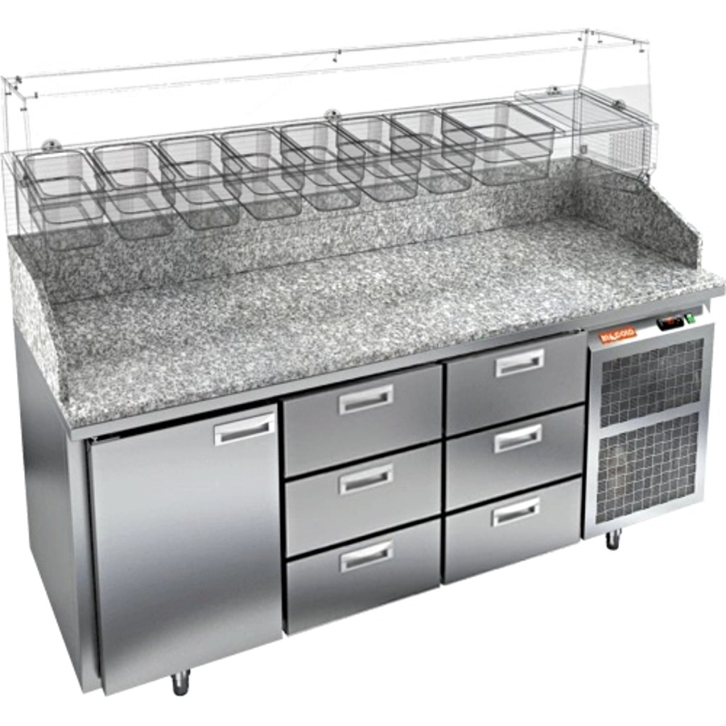 Каталог оборудования Холодильное оборудованиеСтолы охлаждаемыеСтолы холодильные для пиццыСтол холодильный для пиццы HiCold PZ3-133/GN камень Стол холодильный для пиццы HiCold PZ3-133/GN камень Код товара: 065-009 Поделиться: WhatsAppTelegram СравнитьДобавить в КПВ избранное 0 358 552 ₽ В корзину 0 шт Под заказСамовывоз сегодня бесплатно Взять в кредит Купить в лизинг Получить консультацию в WhatsApp Описание Характеристики Отзывы 0 Стол холодильный для пиццы HiCold PZE3-133/GN камень предназначен для использования в пиццериях, кафе, магазинах и ресторанах. Он идеально подходит для раскатки теста, подготовки ингредиентов и кратковременного хранения скоропортящихся продуктов. Витрина приобретается отдельно. Стол сочетает корпус из нержавеющей стали и гранитную столешницу, которая устойчива к механическим и температурным нагрузкам и удобна в работе с тестом. Такая конструкция обеспечивает долговечность, гигиеничность и простоту ухода. Особенности модели: Охлаждение: динамическое — равномерное поддержание температуры Оттайка: автоматическая — удобство и экономия времени Панель управления: электронная — точная настройка температуры Ножки: регулируемые по высоте — устойчивость на неровной поверхности Двери: 1 глухая дверца с автоматическими доводчиками и фиксатором открытого положения Ящики: 6 выдвижных ящика — удобное хранение ингредиентов Уплотнители: легкозаменяемые магнитные — герметичность и простота обслуживания Толщина теплоизоляции: 50 мм — сохранение холода и энергоэффективность Рабочая поверхность: глубина 680 мм — удобство работы HiCold PZE3-133/GN камень— это надёжный и функциональный холодильный стол для пиццы, который сочетает прочность, эргономику и эффективное охлаждение. Благодаря гранитной столешнице, корпусу из нержавеющей стали, двум глухим дверям и двум выдвижным ящикам он станет универсальным решением для профессиональной кухни. Изображение товара, представленного на фото, может отличаться от его фактического вида. Показать все Габаритные размеры1835×700×1050 ммДиапазон рабочей температурыот +2 до +10 °CРасположение агрегатаБоковое Материал столешницыГранитная Тип столаС дверьми и ящиками Тип двериГлухая Объём505 лКоличество дверей2 штКоличество ящиков2 штРазмер полки530×325 ммНапряжение220 ВМощность0,5 кВтТип охлажденияДинамическое Тип оттайкиАвтоматическая Габариты в упаковке2000×850×1180 ммВес нетто172 кгВес брутто192 кгБрендHicoldВсе холодильные столы для пиццы HicoldВсе нержавеющие холодильные столы для пиццы Оставить отзыв Еще никто не оставил отзыв на этот товар Ранее просмотрено Под заказ 381 862 ₽ Стол холодильный для пиццы HiCold PZ2-1133GN (1/6) камень