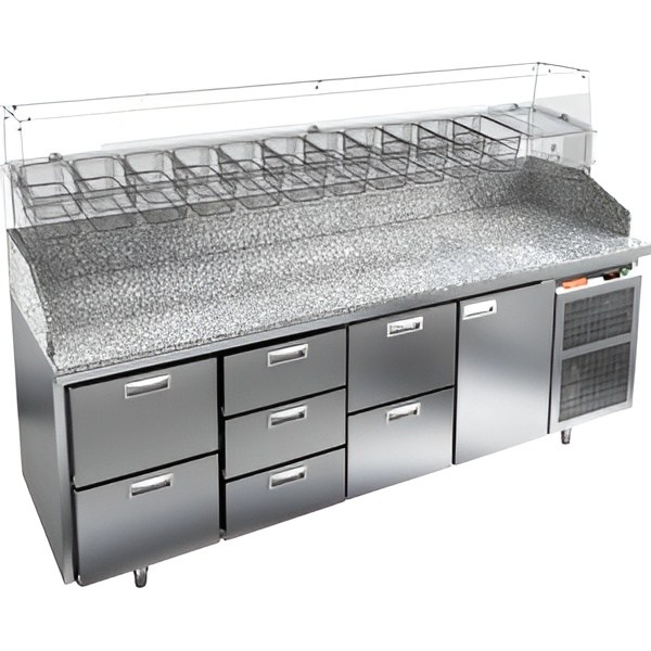 Каталог оборудования Холодильное оборудованиеСтолы охлаждаемыеСтолы холодильные для пиццыСтол холодильный для пиццы HiCold PZ3-2321/GN камень Стол холодильный для пиццы HiCold PZ3-2321/GN камень Код товара: 065-015 Поделиться: WhatsAppTelegram СравнитьДобавить в КПВ избранное 0 391 221 ₽ В корзину 0 шт Под заказСамовывоз сегодня бесплатно Взять в кредит Купить в лизинг Получить консультацию в WhatsApp Описание Характеристики Отзывы 0 Стол холодильный для пиццы HiCold PZ3-2321/GN камень предназначен для использования в пиццериях, кафе, магазинах и ресторанах. Он идеально подходит для раскатки теста, подготовки ингредиентов и кратковременного хранения скоропортящихся продуктов. Витрина приобретается отдельно. Стол сочетает корпус из нержавеющей стали и гранитную столешницу, которая устойчива к механическим и температурным нагрузкам и удобна в работе с тестом. Такая конструкция обеспечивает долговечность, гигиеничность и простоту ухода. Особенности модели: Охлаждение: динамическое — равномерное поддержание температуры Оттайка: автоматическая — удобство и экономия времени Панель управления: электронная — точная настройка температуры Ножки: регулируемые по высоте — устойчивость на неровной поверхности Двери: 1 глухая дверца с автоматическими доводчиками и фиксатором открытого положения Ящики: 7 выдвижных ящика — удобное хранение ингредиентов Уплотнители: легкозаменяемые магнитные — герметичность и простота обслуживания Толщина теплоизоляции: 50 мм — сохранение холода и энергоэффективность Рабочая поверхность: глубина 680 мм — удобство работы HiCold PZ3-2321/GN камень — это надёжный и функциональный холодильный стол для пиццы, который сочетает прочность, эргономику и эффективное охлаждение. Благодаря гранитной столешнице, корпусу из нержавеющей стали, двум глухим дверям и двум выдвижным ящикам он станет универсальным решением для профессиональной кухни. Изображение товара, представленного на фото, может отличаться от его фактического вида. Показать все Габаритные размеры2280×700×1050 ммДиапазон рабочей температурыот +2 до +10 °CРасположение агрегатаБоковое Материал столешницыГранитная Тип столаС дверьми и ящиками Тип двериГлухая Объём660 лКоличество дверей1 штКоличество ящиков7 штРазмер полки530×325 ммНапряжение220 ВМощность0,5 кВтТип охлажденияДинамическое Тип оттайкиАвтоматическая Габариты в упаковке2430×850×1140 ммВес нетто270 кгВес брутто320 кгБрендHicoldВсе холодильные столы для пиццы HicoldВсе нержавеющие холодильные столы для пиццы Оставить отзыв Еще никто не оставил отзыв на этот товар Ранее просмотрено Под заказ 103 132 ₽ Витрина холодильная Ангара 3 КУБ 1,3 динамика Под заказ 101 396 ₽ Витрина холодильная Dazzl Galaxy 080 125 динамика Под заказ 106 591 ₽ Витрина холодильная Dazzl Galaxy 080 125 Self динамика