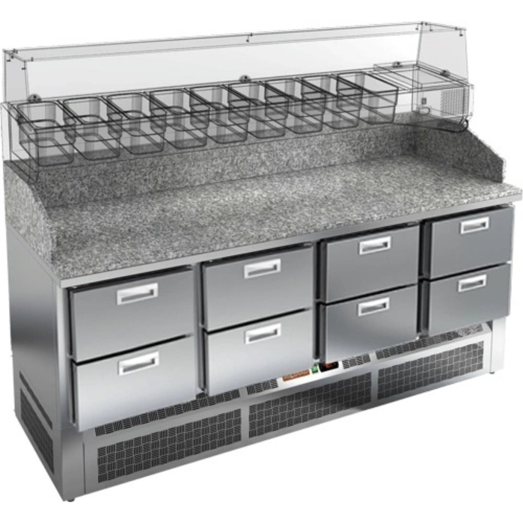 HiCold PZE3-222/GN камень — надёжный и функциональный холодильный стол с гранитной столешницей, который сочетает прочность, удобство в работе и эффективное охлаждение продуктов. Он станет универсальным решением для профессиональной кухни, где важны скорость, организация и сохранение свежести ингредиентов.