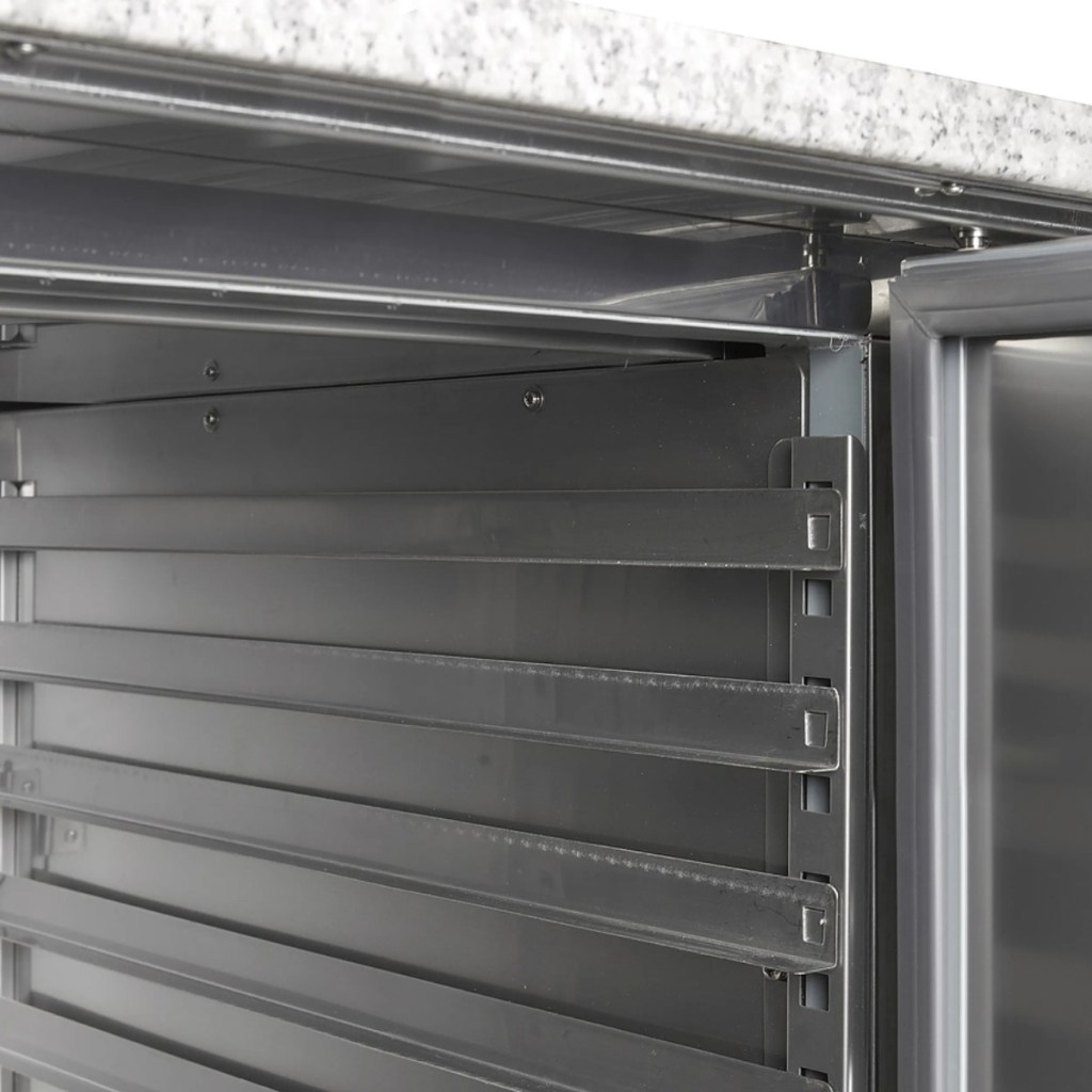 Стол холодильный для пиццы TEFCOLD PT1365 предназначен для обработки ингредиентов и хранения полуфабрикатов из мяса, рыбы и других продуктов на предприятиях общественного питания и торговли. Модель оснащена нижним агрегатным отсеком, столешницей с задним и боковыми бортами, а также тремя секциями с глухими распашными дверьми, интегрированными рукоятками и кнопочной панелью с цифровым дисплеем. Корпус и внутренняя облицовка выполнены из нержавеющей стали SS304, столешница и борта — из гранита.