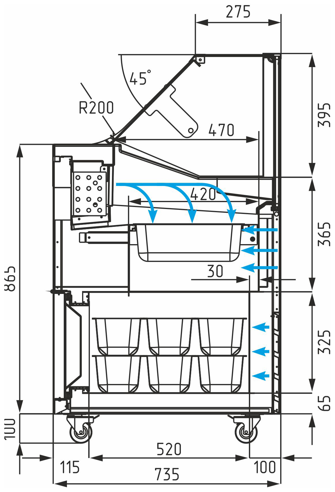 Удобство использования: Легкий доступ к продукту благодаря скользящим лоткам. Возможность регулировки температуры с помощью электронного термостата.