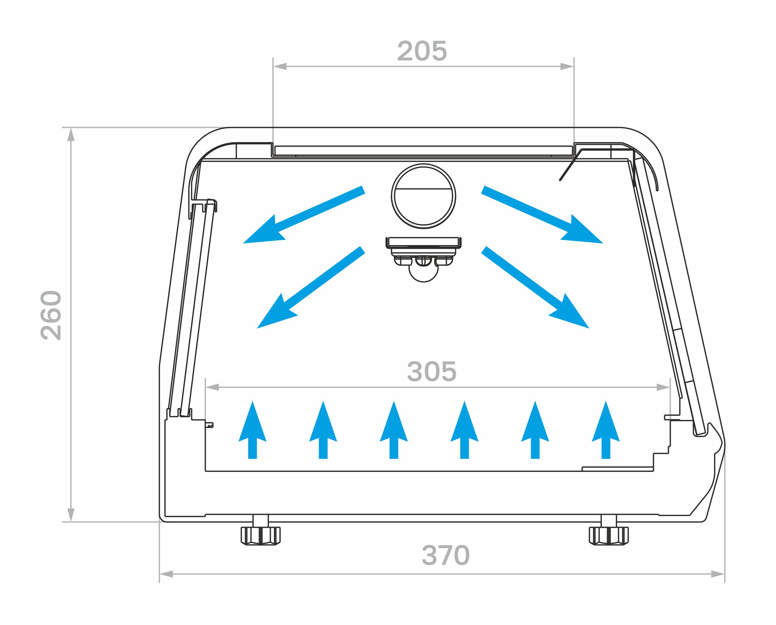 Корпус выполнен из стали с антикоррозийным покрытием, зона выкладки — из нержавеющей стали, что обеспечивает гигиеничность и долговечность конструкции. Эффективная статическая система охлаждения сохраняет свежесть продуктов, предотвращая их обветривание.