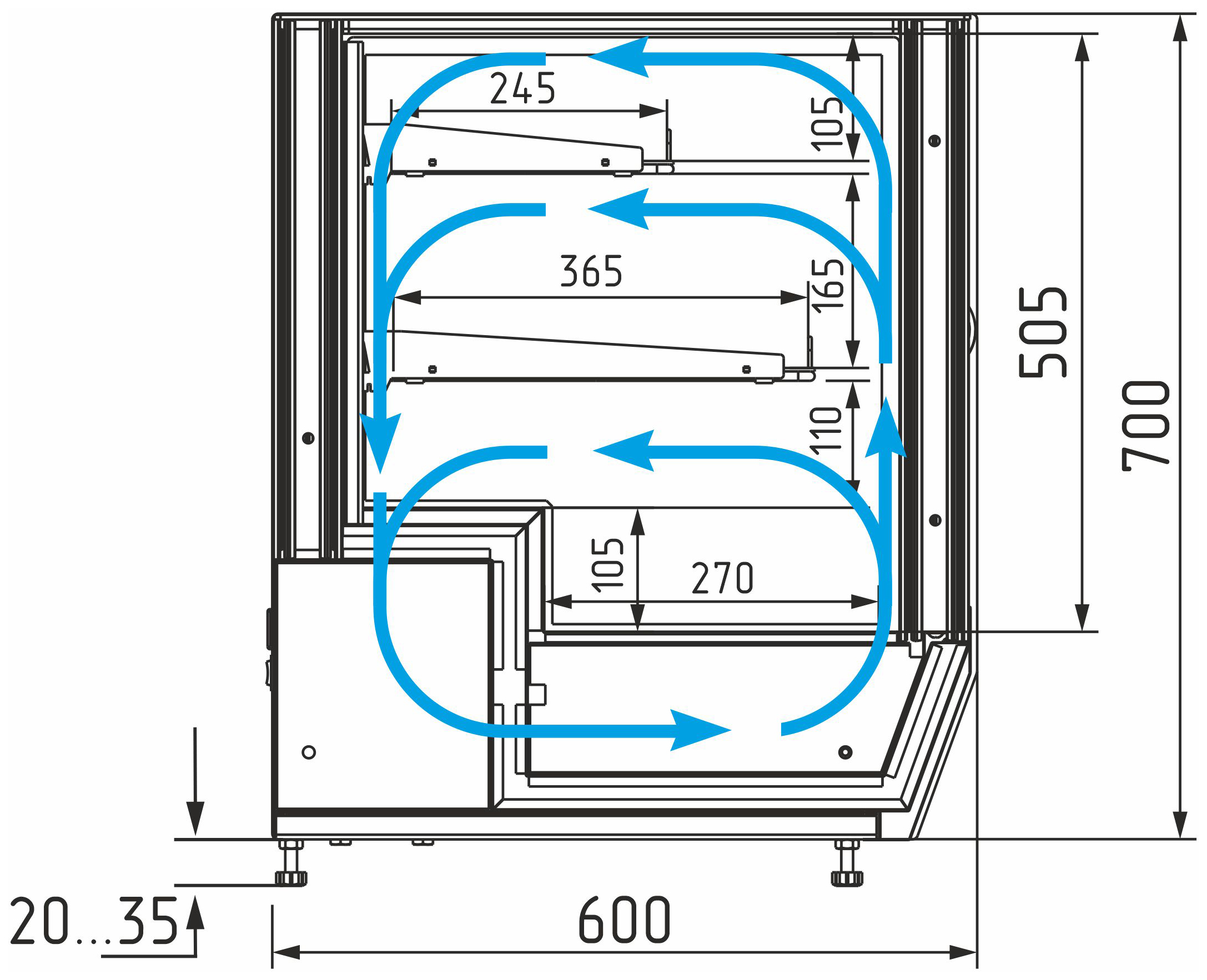 Каталог оборудования Холодильное оборудованиеВитрины настольныеВитрина холодильная настольная Carboma AC59 VM 0,9-1 (слайдер) (0430) Витрина холодильная настольная Carboma AC59 VM 0,9-1 (слайдер) (0430) Код товара: 063-687 Поделиться: WhatsAppTelegram СравнитьДобавить в КПВ избранное 0 117 630 ₽ В корзину 0 шт Под заказСамовывоз сегодня бесплатно Взять в кредит Купить в лизинг Получить консультацию в WhatsApp Описание Характеристики Отзывы 0 Инструкции 2 Витрина холодильная настольная Carboma AC59 VM 0,9-1 (слайдер) (0430) — это универсальная охлаждаемая витрина для демонстрации и кратковременного хранения кондитерских изделий, десертов, салатов и напитков. Идеально подходит для небольших кафе, баров и заведений общественного питания. Модель оснащена закалёнными боковыми стеклопакетами, раздвижными фронтальными и задними дверцами, а также двумя охлаждаемыми полками-решётками с ограничителями. Может устанавливаться на столешницу или встраиваться в барную стойку. Корпус выполнен из стали с ППУ-теплоизоляцией, а рабочая поверхность — из нержавеющей стали. Ключевые особенности: Динамическая система охлаждения — равномерное распределение температуры Компрессор европейского производства — высокая надёжность Электронный блок управления Carel — точный контроль температурного режима Выпариватель конденсата — исключает необходимость ручного слива Возможность установки полок под углом 5° — улучшенная презентация Фронтальные и задние раздвижные дверцы — удобный доступ с обеих сторон Боковая LED-подсветка — подчёркивает структуру десертов и изделий Современный кубический дизайн — стильный внешний вид Регулируемые ножки-опоры — устойчивость на любых поверхностях Настольное или встраиваемое размещение — гибкость установки Стабильный температурный режим — для безопасного хранения продуктов Глубина нижней зоны выкладки: 270 мм Глубина полок: 365 мм (верхняя) / 245 мм (нижняя) Длина нижнего поддона: 866 мм Максимальная высота выкладки продуктов: нижний поддон — 150 мм, полки — 100 мм Температура окружающей среды: от 12 до 25 °C Относительная влажность воздуха: до 60% Carboma AC59 VM 0,9-1 (слайдер) (0430) — это надёжная и эргономичная охлаждаемая витрина с удобным доступом с обеих сторон, которая обеспечит качественную демонстрацию и сохранность продукции в кафе, барах и точках продаж.Изображение товара, представленного на фото, может отличаться от его фактического вида. Показать все Габаритные размеры900×600×735 ммДиапазон рабочей температурыот +4 до +10 °CДлина900 ммГлубина600 ммВысота735 ммРазмещениеГоризонтальная Площадь выкладки0,73 м²Полезный объем витрины0,09 м³Тип охлажденияДинамическое Климатический класс3 ХладагентR290, R600a Напряжение220 ВЭнергопотребление в сутки0,5 кВтКоличество полок2 штГабариты в упаковке1050×750×890 ммВес нетто89 кгВес брутто126 кгБрендПолюсВсе витрины настольные CarbomaВсе холодильные настольные витриныВсе стеклянные настольные витрины Оставить отзыв Еще никто не оставил отзыв на этот товар Брошюра на Carboma AMRA AC59 VM.pdfСхема Carboma AMRA AC59 VM 0,9-1 Slider.jpg Похожие товары Перейти в каталог Под заказ 150 290 ₽ Витрина кондитерская Chilz VETE LUX 90 шоколад, золотой глянец Под заказ 115 912 ₽ Витрина кондитерская Kayman K-ВК-900 люкс бронза В наличии 116 000 ₽ Витрина кондитерская Carboma KC70 VM 0,6-1 LIGHT (версия 2.0) (9005) В наличии 127 424 ₽ Витрина кондитерская МХМ Veneto VS-1,3 нержавейка new Под заказ 174 749 ₽ Витрина кондитерская Chilz VETE
